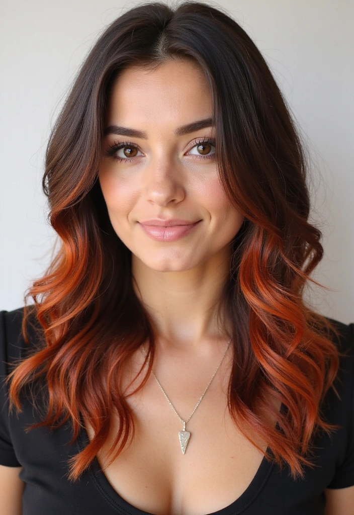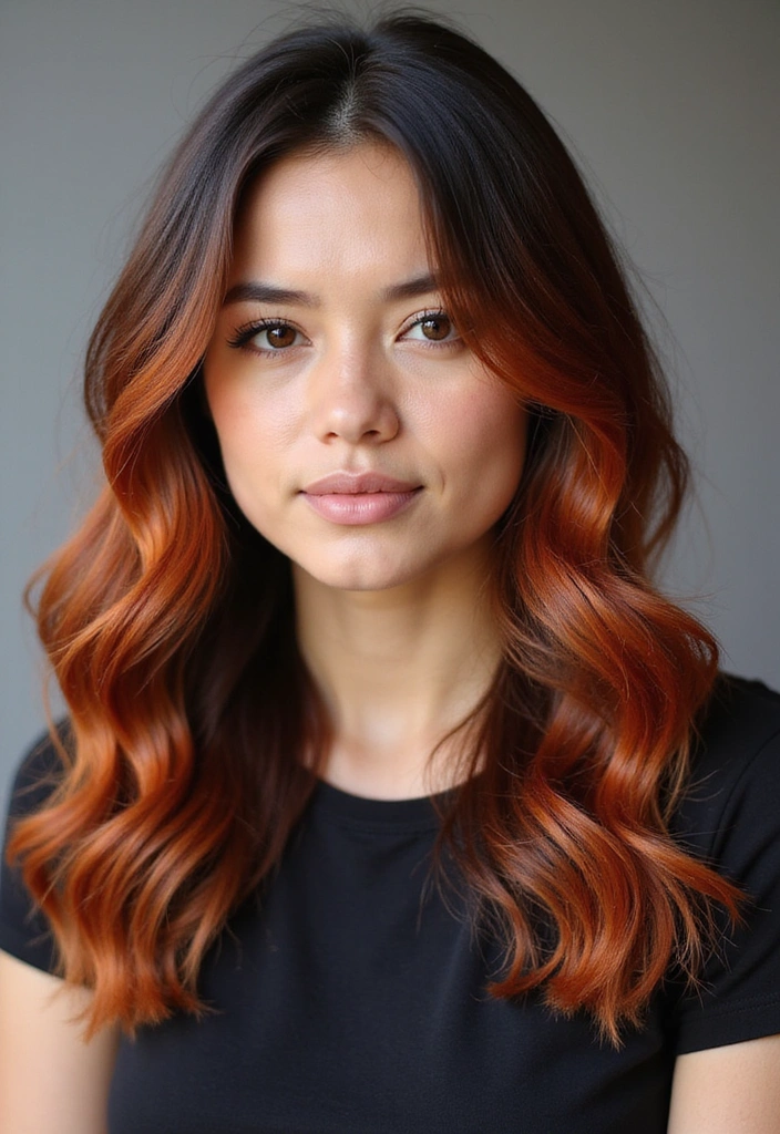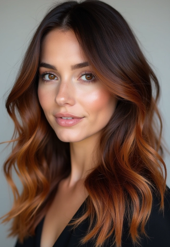 For the fiery souls out there, auburn balayage can add a bold and passionate twist to your dark brown hair. This style incorporates rich auburn hues that blend seamlessly with chocolate brown, creating a warm, vibrant look. It’s perfect for those wanting to make a statement without being too loud.