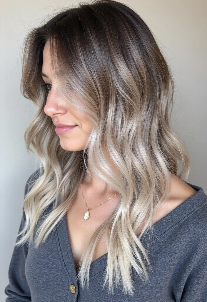 Whether you have straight or wavy hair, ashy balayage can complement your natural texture beautifully. It’s particularly striking on darker skin tones, making you stand out with elegance.