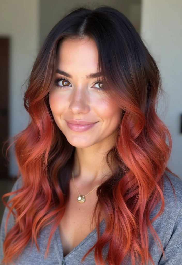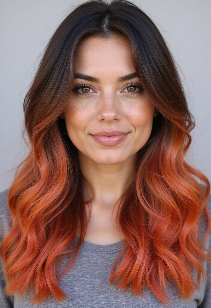 Sunset balayage is a stunning style that captures the beautiful hues of a sunset. This technique features a blend of warm oranges, pinks, and yellows that transition beautifully into dark brown hair. Perfect for those wanting to embrace the colorful aspects of their personality!