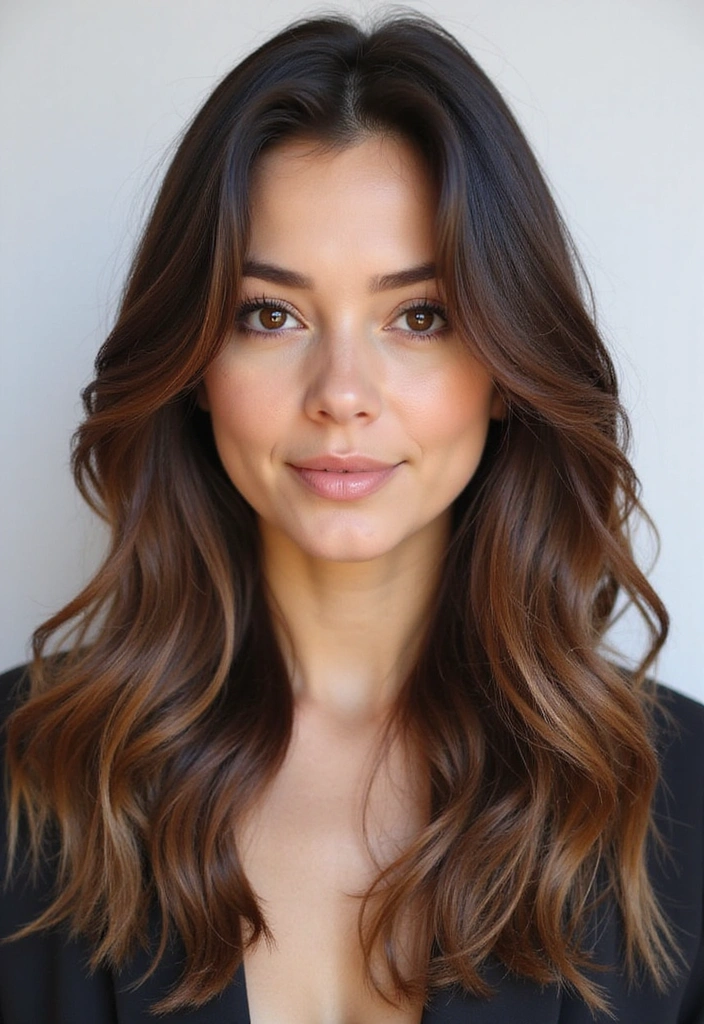 Warm chestnut balayage combines the rich tones of chestnut brown with soft highlights, resulting in a warm and inviting look. This style is perfect for anyone looking to add depth to their dark brown hair without going overboard.