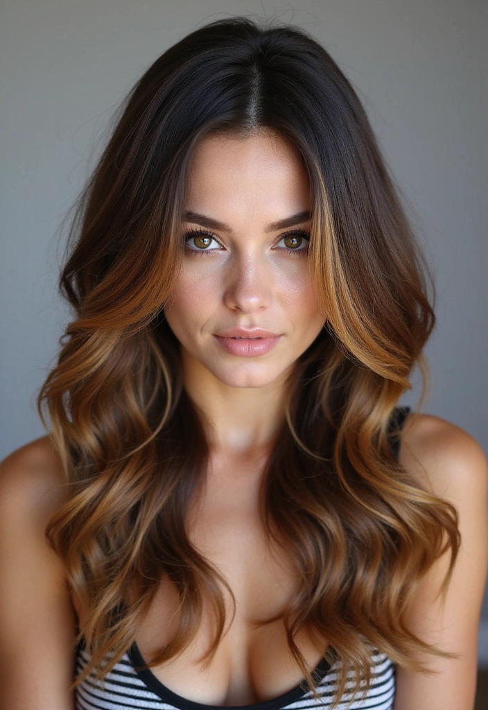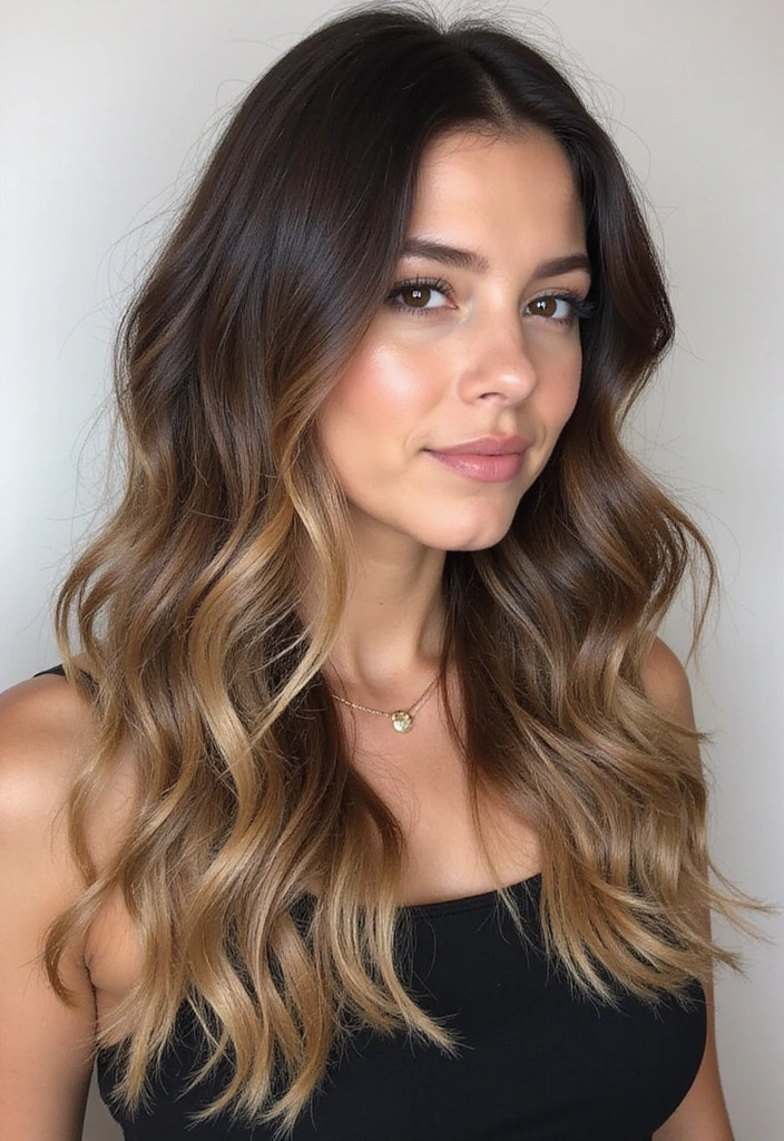 Embrace the ultimate sun-kissed look with light balayage highlights! This trend features soft, sunlit strands that blend harmoniously with a dark brown base. The result is a look that’s effortlessly chic and perfect for any occasion.