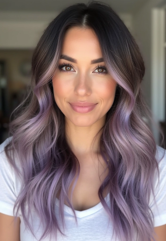 The pearl and brown fusion balayage style is all about elegance and sophistication. This technique combines rich dark brown with soft pearl-like highlights, giving your hair an ethereal glow. It’s perfect for those who want a unique, refined look that isn’t overly dramatic.