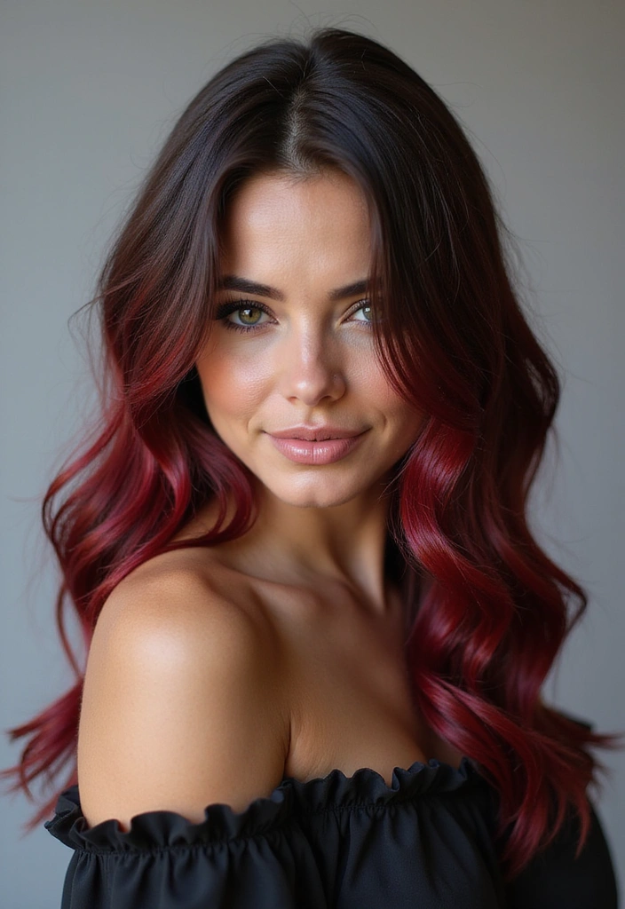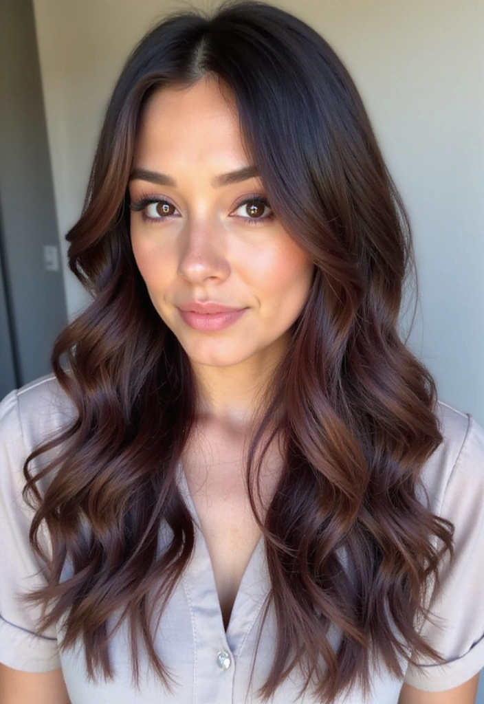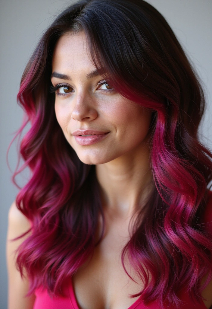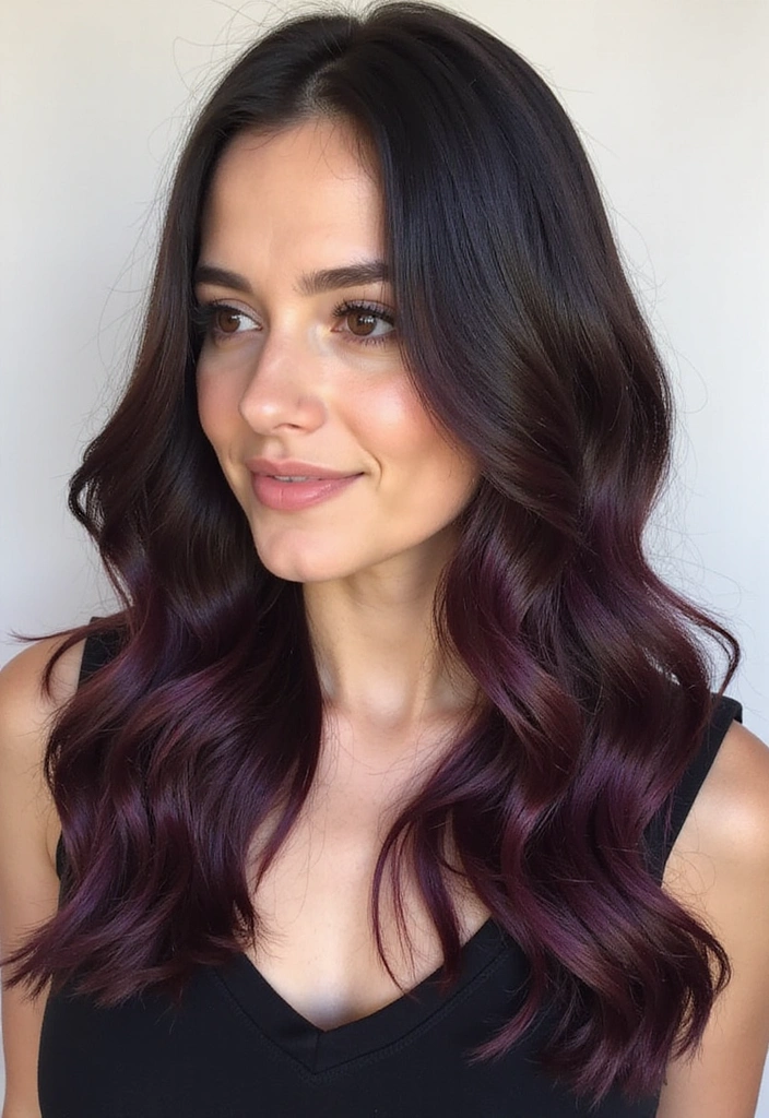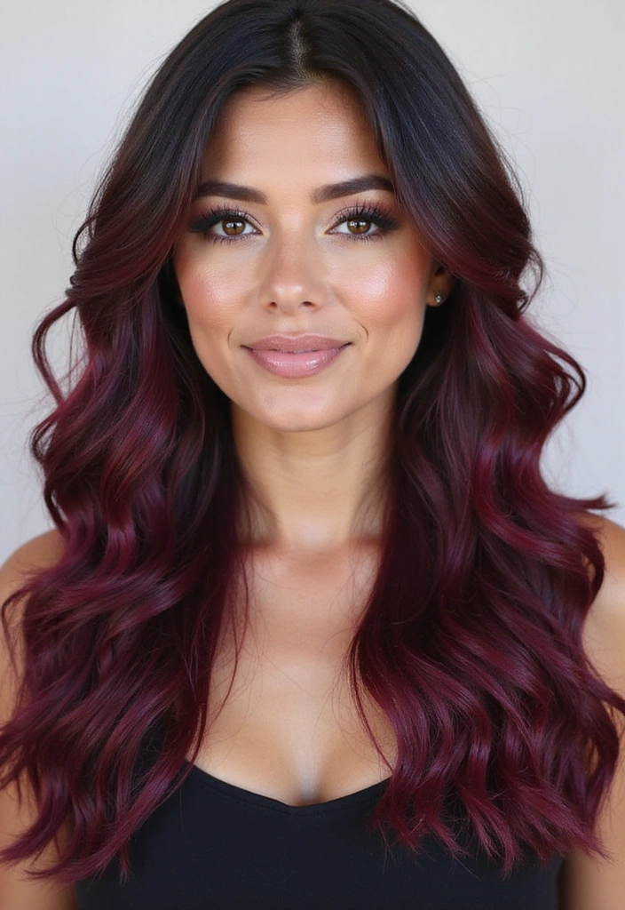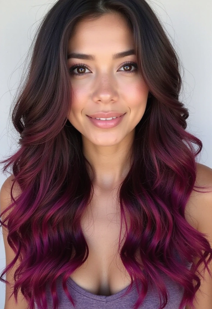 Mixed berry balayage offers a playful and vibrant take on dark brown hair. This style incorporates rich hues of berry tones that blend beautifully with deep brown strands, resulting in a fun and flirty look. Ideal for anyone wanting to express their creative side!