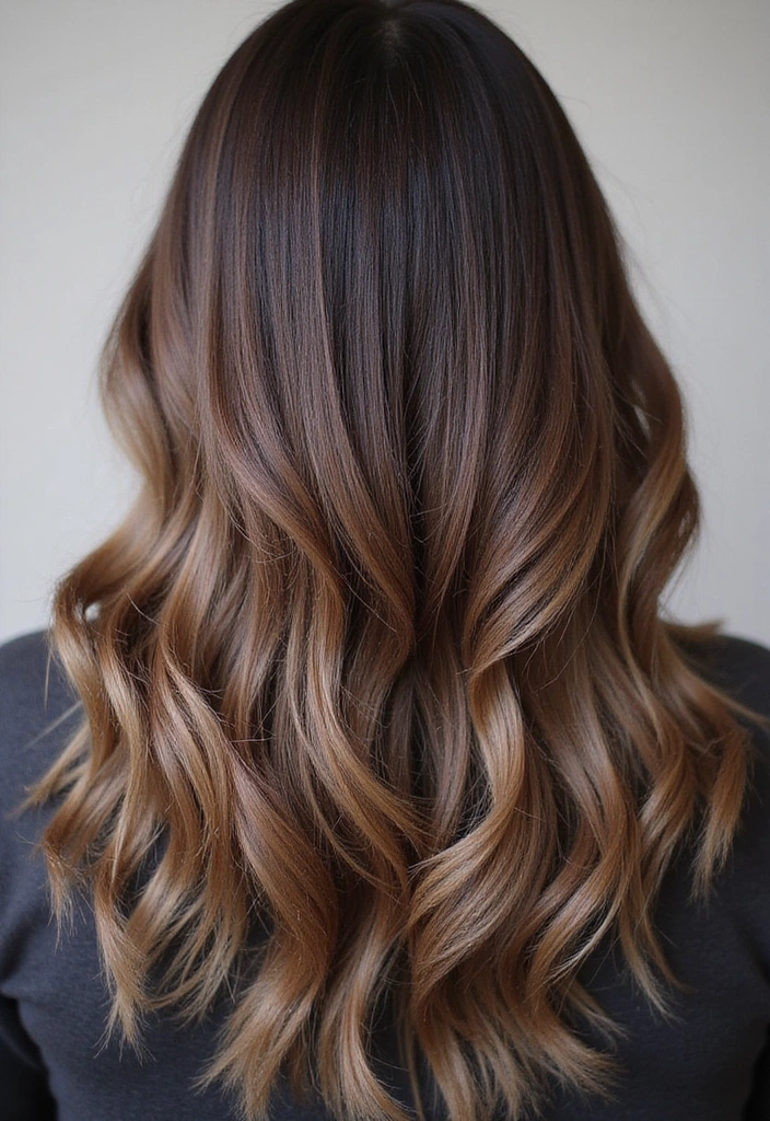 If you’re looking for a warm, inviting look, consider a caramel and mocha blend! This balayage technique mixes rich mocha brown with bright caramel highlights for depth and warmth. It’s great for adding dimension to dark hair, giving it a playful and vibrant appearance.