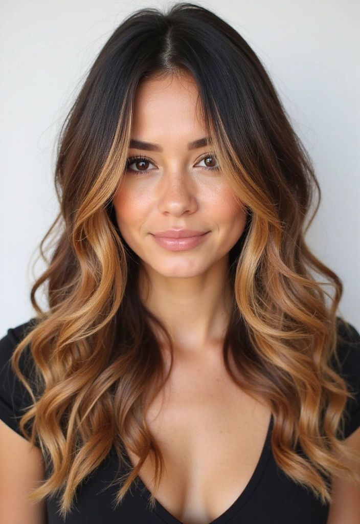Golden balayage works beautifully on medium to dark brown hair, providing a vibrant contrast that adds life and energy to your style. Perfect for parties or special occasions, this look is meant to stand out.