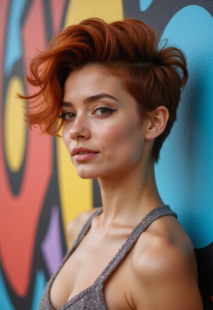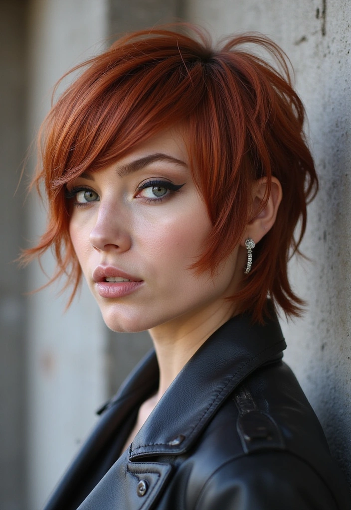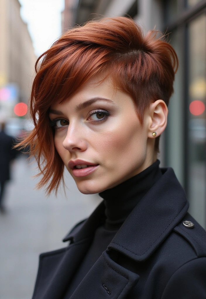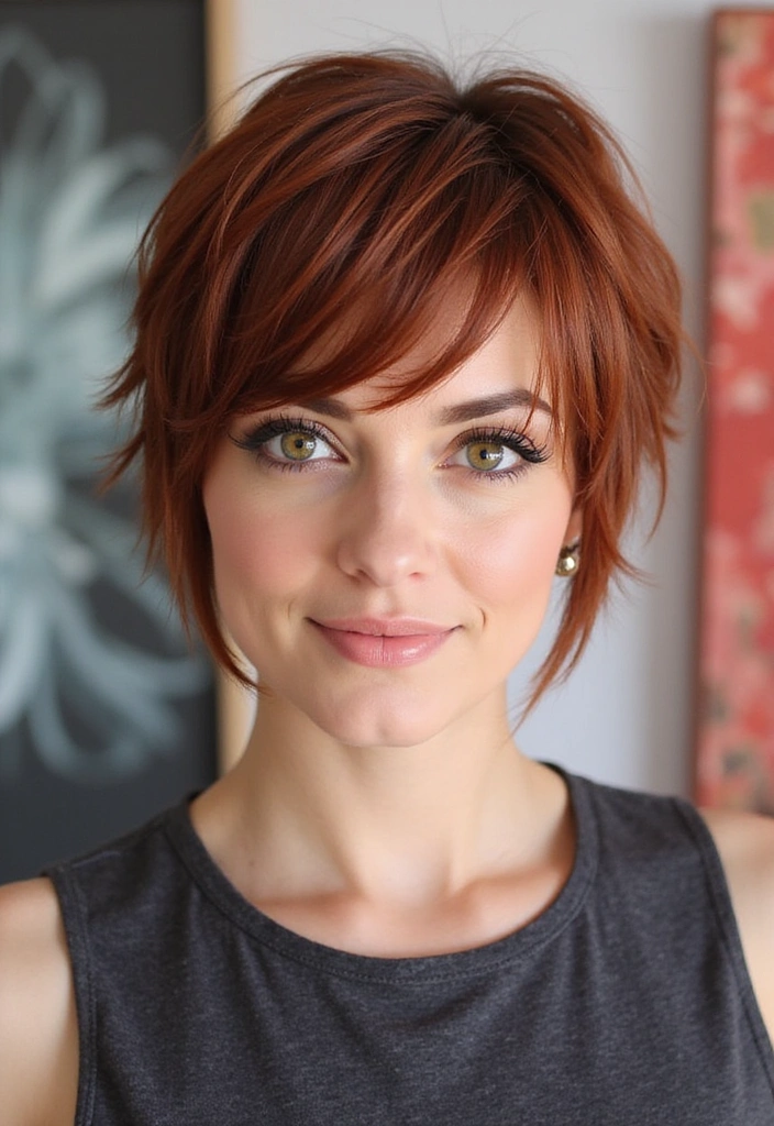 The layered pixie cut in auburn is a modern, edgy choice that combines elegance with a fun twist.