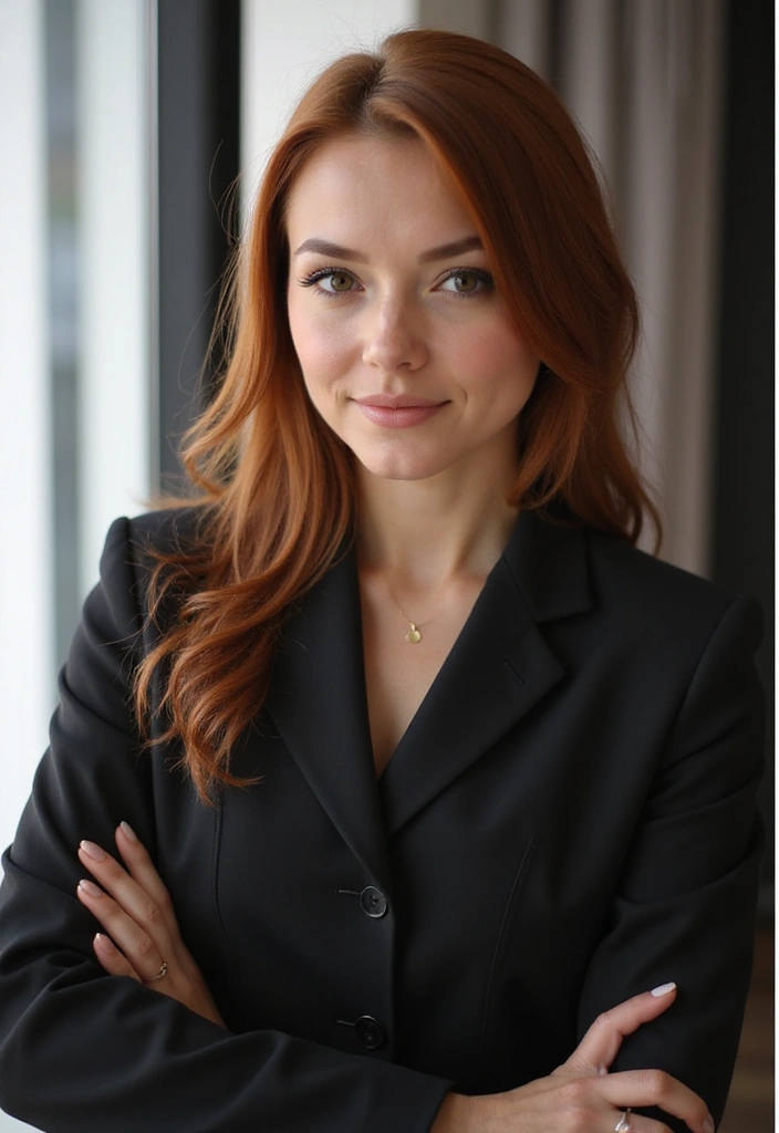 The sleek back hairstyle in auburn is all about polished simplicity and is perfect for professional settings or elegant events.