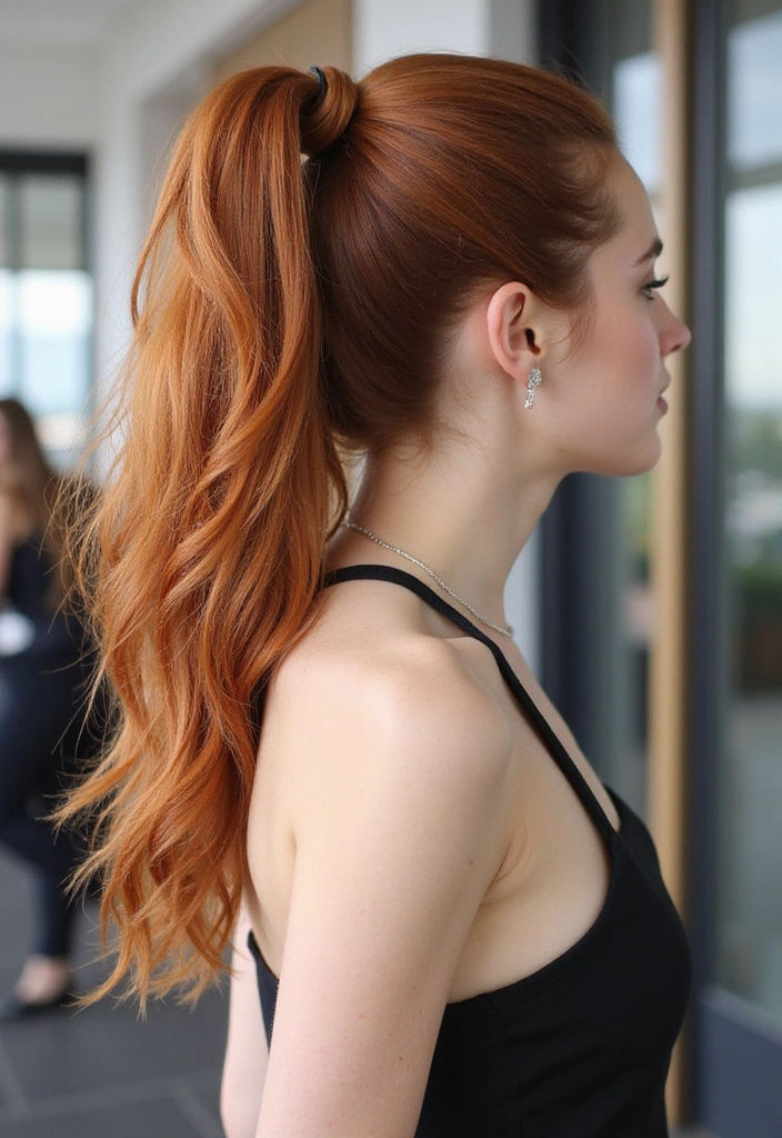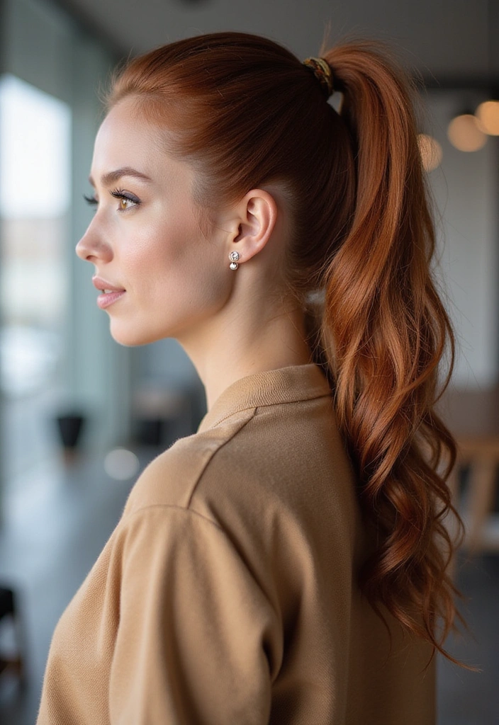An auburn high ponytail is a fresh and youthful hairstyle that works for any occasion.
