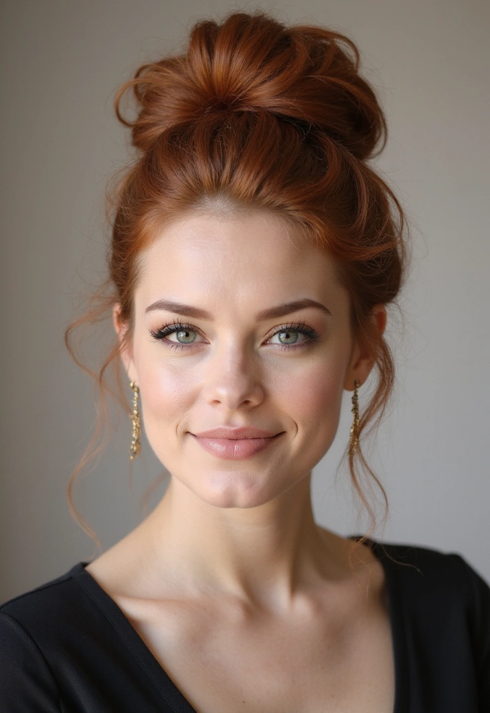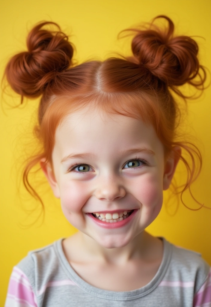 This fun style involves creating two buns on either side of the head, showcasing your auburn color beautifully.