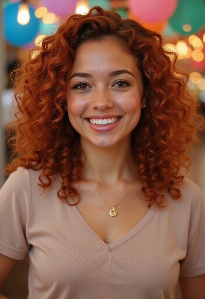 Vibrant curls are a playful way to showcase the beauty of auburn hair.