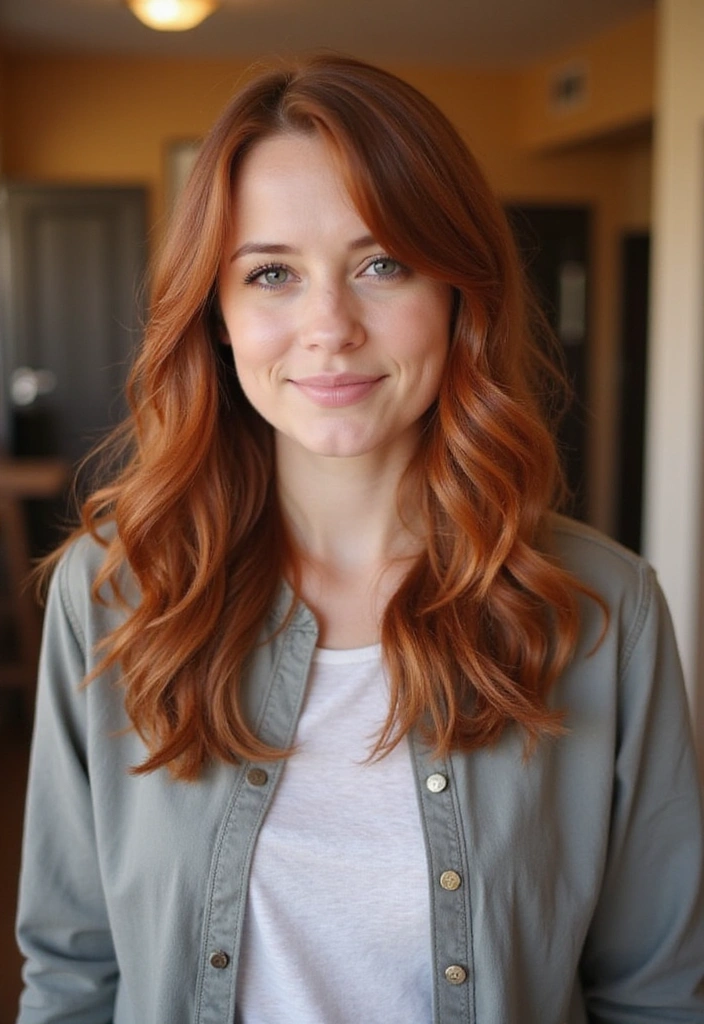 Layered waves in auburn bring out the depth and richness of the color, creating a stunning, lived-in look.