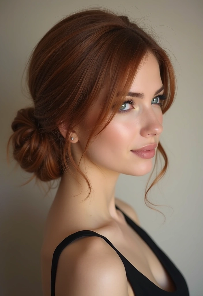 A low bun in auburn is a timeless and elegant choice that works for both formal and casual settings.
