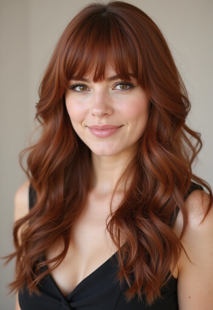 Curtain bangs styled in auburn can add a soft, romantic touch to your overall look.