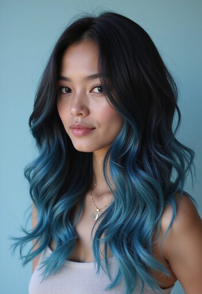 For those who want to keep it cool, icy blue tips can add a fun edge to black hair. This frosty hue creates a beautiful contrast that stands out without being overly bright. It’s a great way to express yourself while keeping a sleek, trendy look.