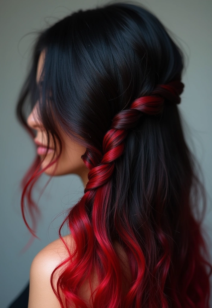 Styles that showcase these bold accents perfectly include braids or loose waves, allowing the red shades to peek through dramatically.