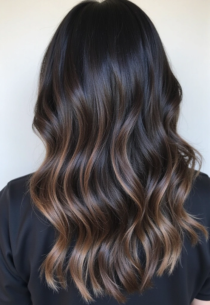 Caramel highlights are a classic choice that never goes out of style! They add warmth and dimension to black hair, making it look effortlessly chic. The deep and rich tones of black contrast beautifully with luscious caramel swirls, creating a stunning visual impact.