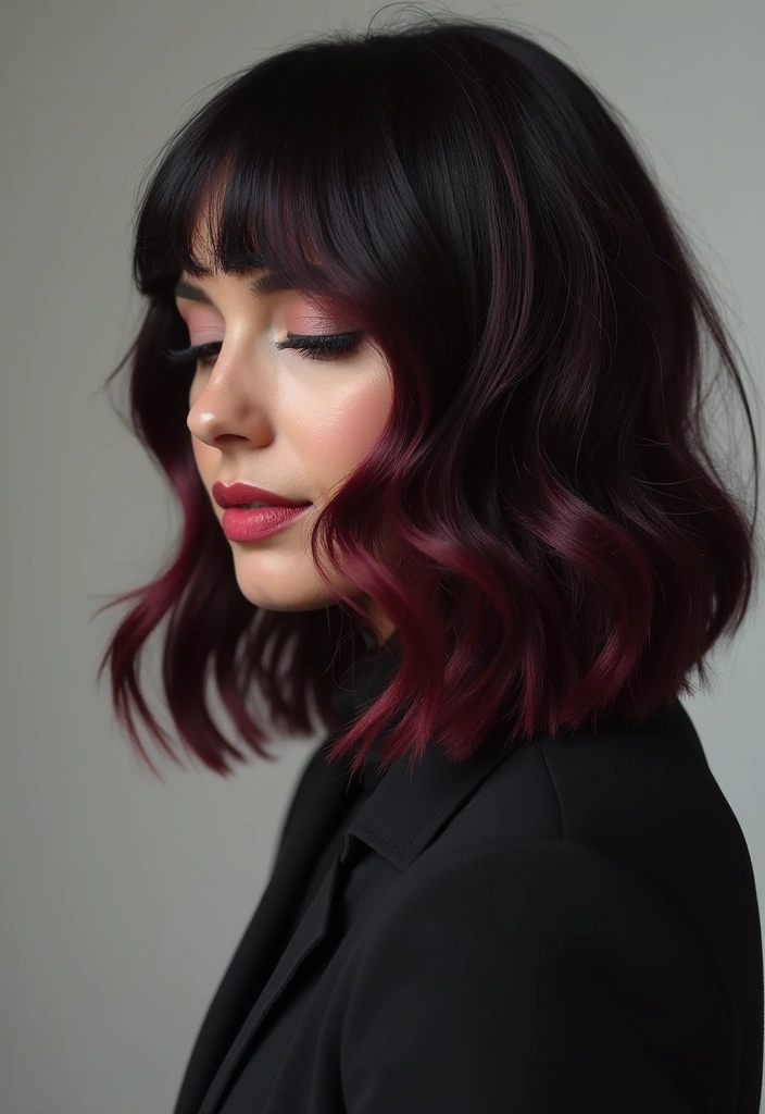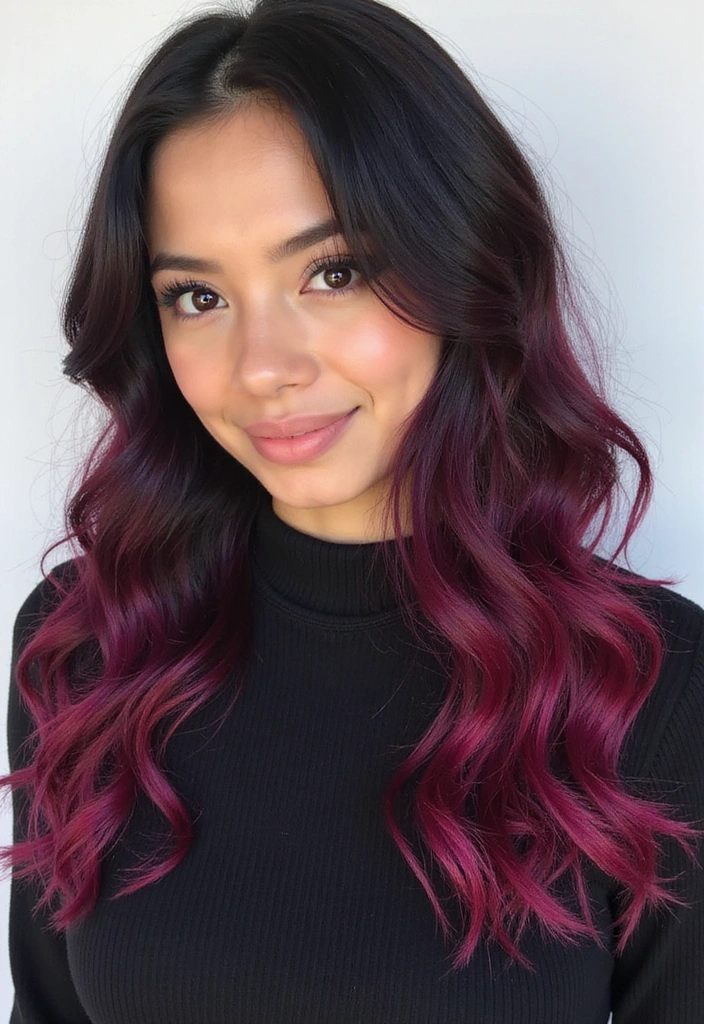 For a trendy look, try adding raspberry highlights in a balayage style for a more natural feel. This way, the color can blend beautifully with your natural black base while adding that fun burst of vibrancy.