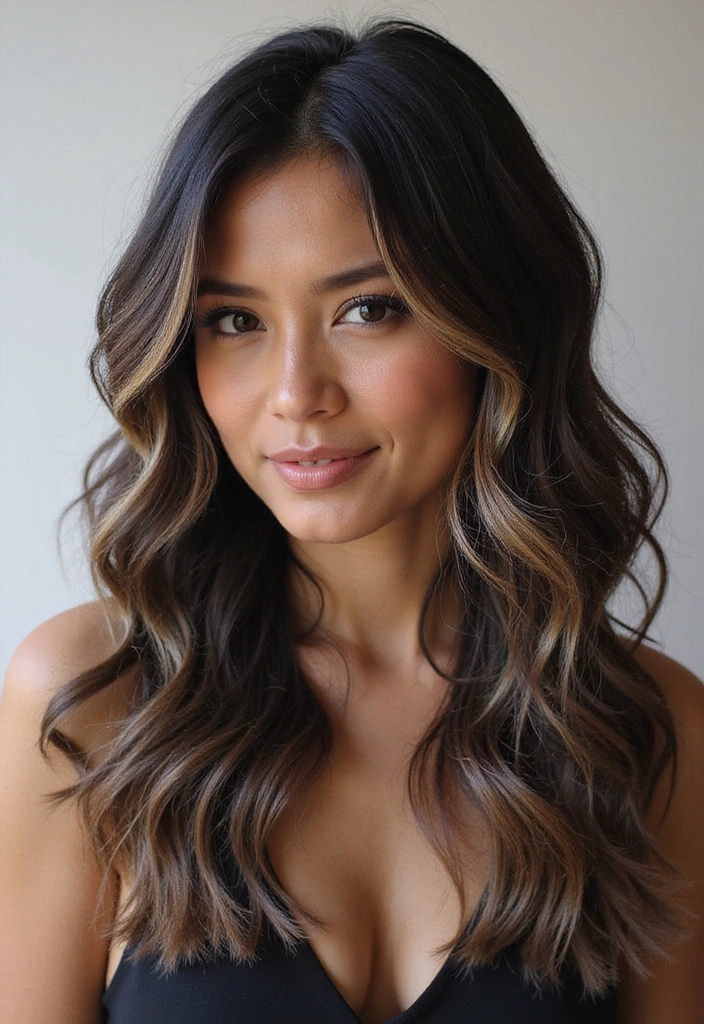 Apply these highlights in a balayage style to ensure a smooth transition from dark to light, offering an effortlessly chic appearance.