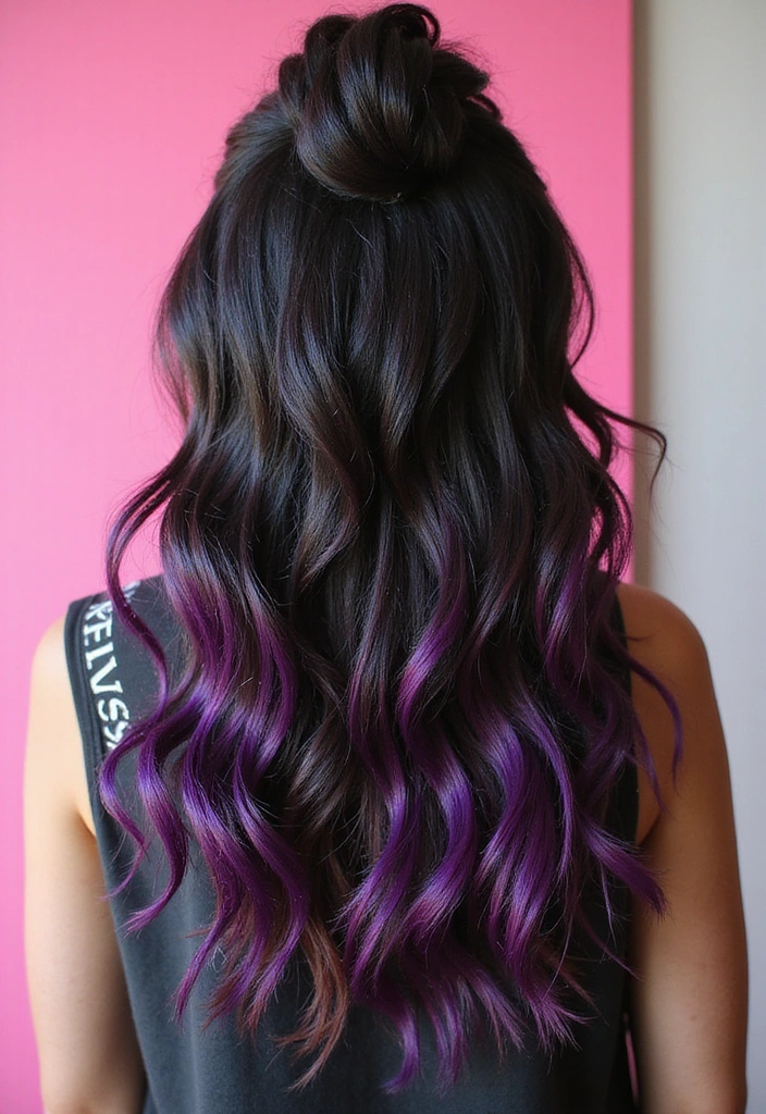 Pair these highlights with soft curls to enhance the vibrancy of the purple tones, and don’t hesitate to add some hair accessories for extra flair!