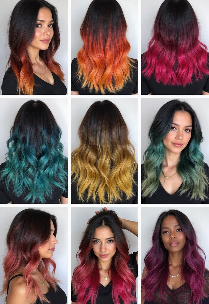 Loose waves or a sleek ponytail can beautifully showcase this gradient style, allowing the colors to shine.