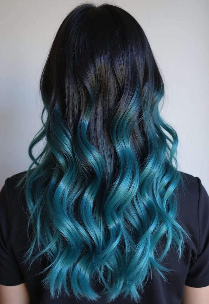 When applying aqua highlights, consider placing them in sections for added dimension and visual interest. The bright color will pop against the deep black, providing a unique contrast.