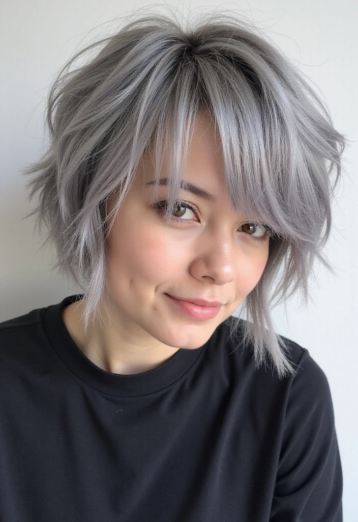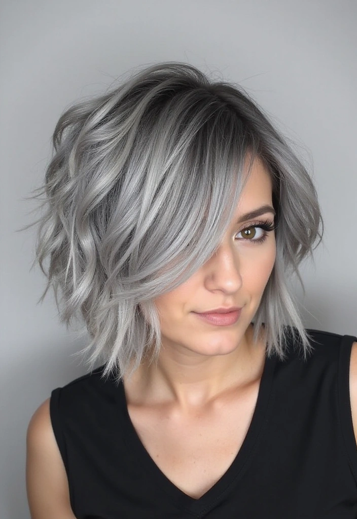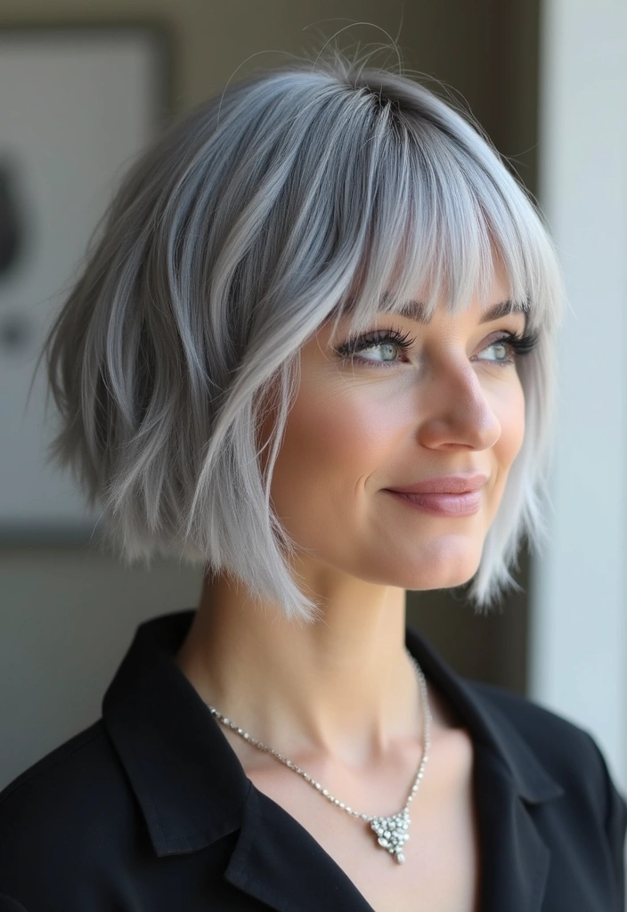 A choppy bob is all about texture and movement. This style features uneven layers that create a fun, edgy appearance, perfect for showing off gray hair.