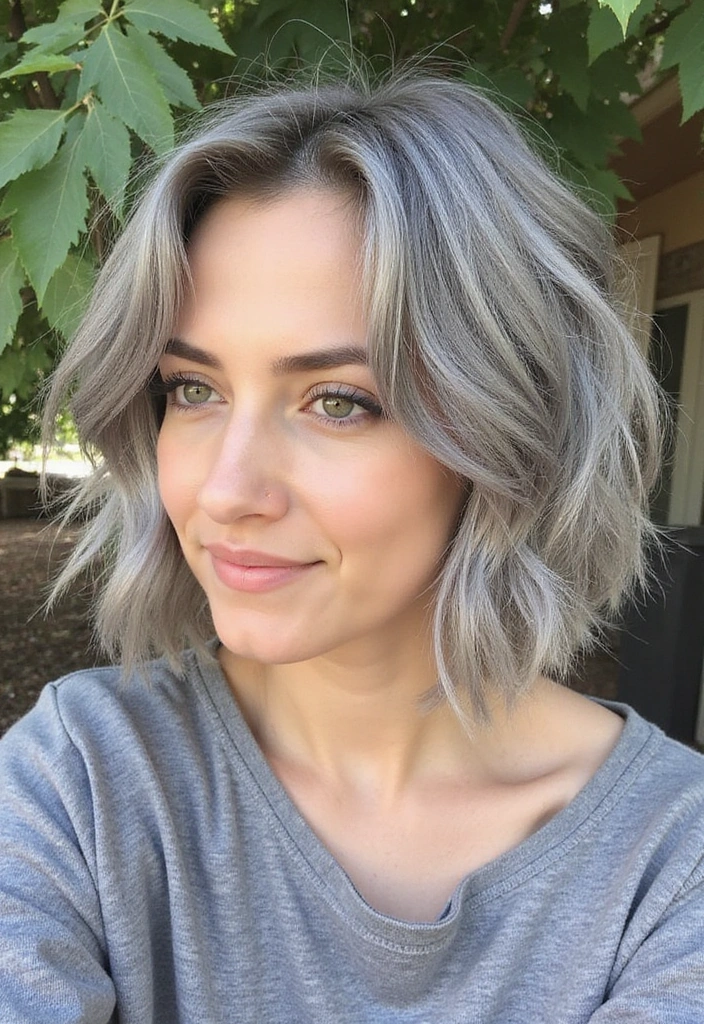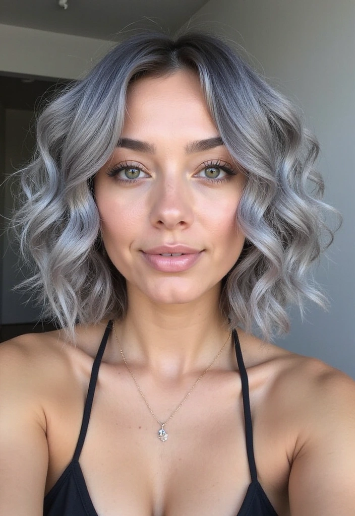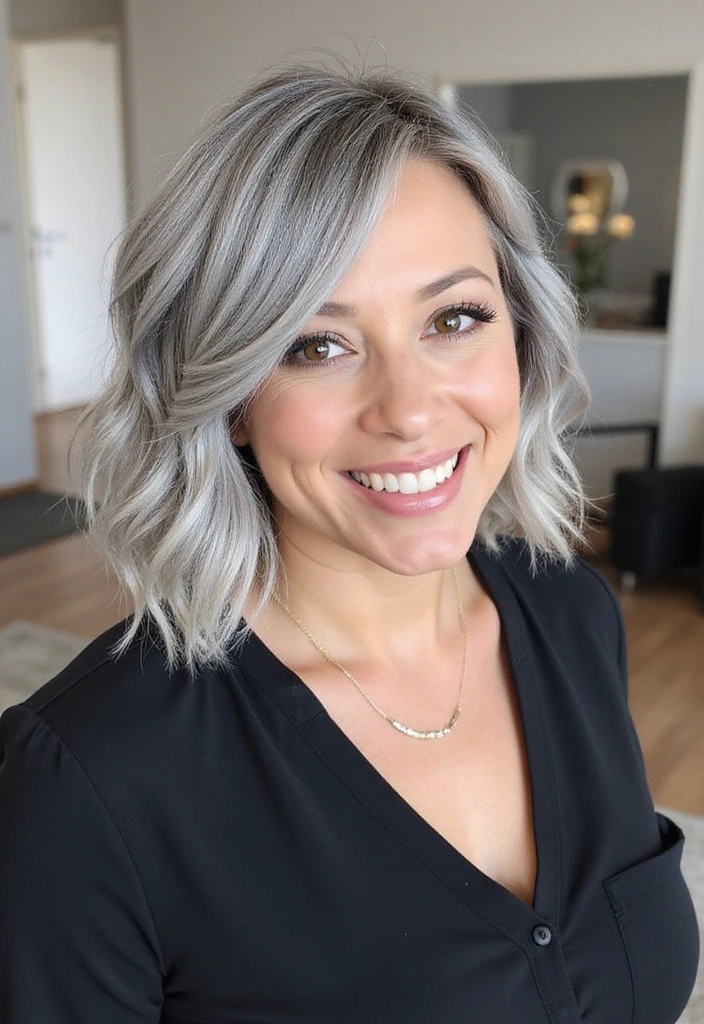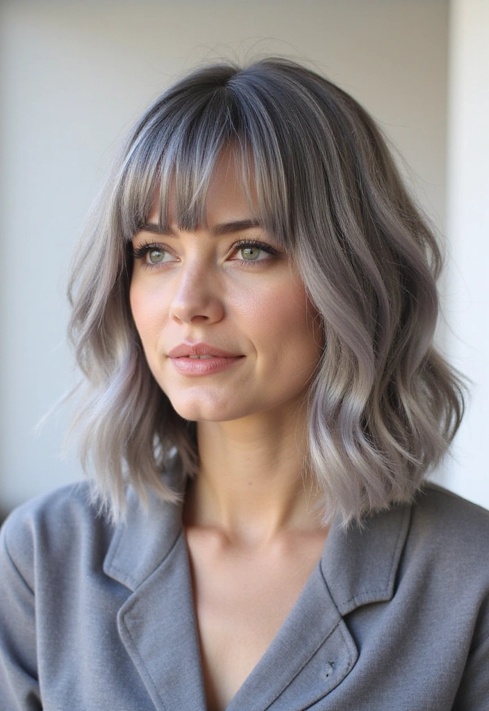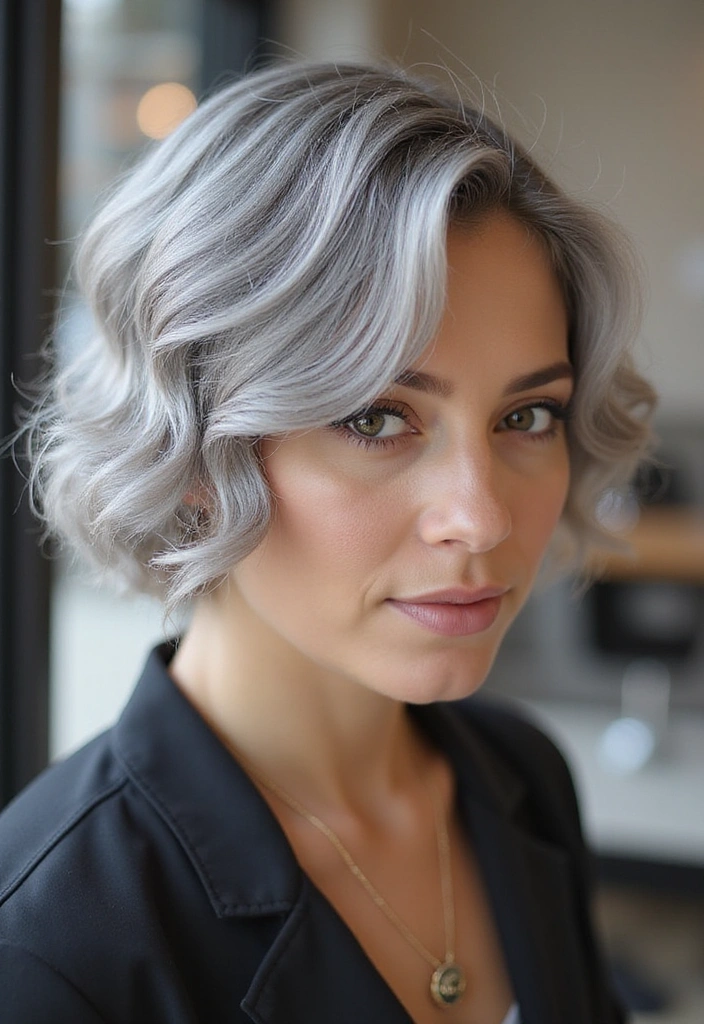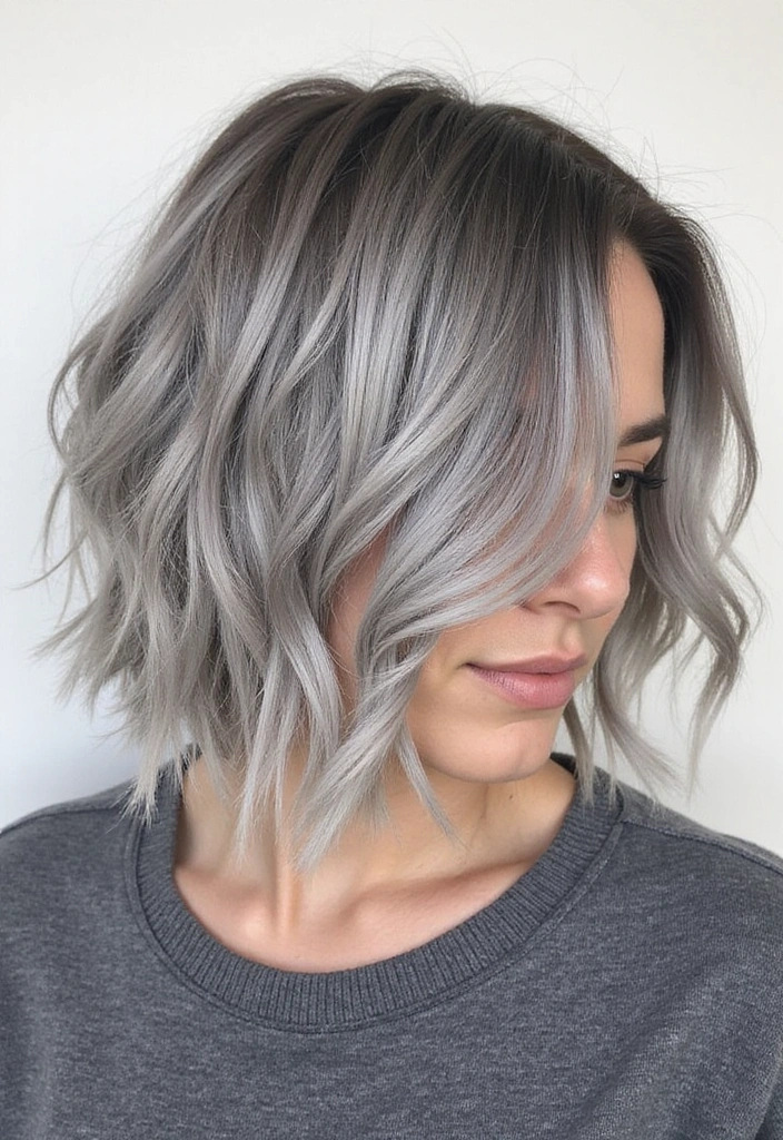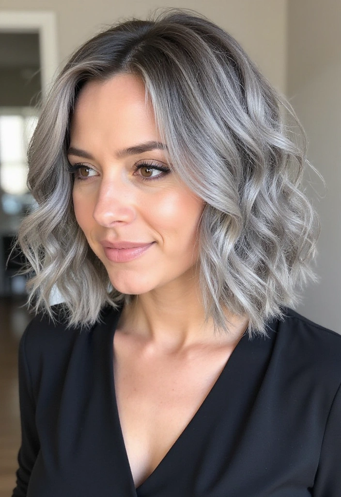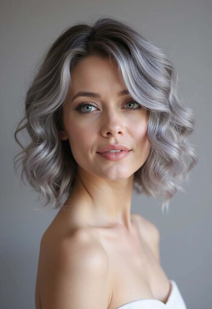 A wavy bob is a fantastic way to add texture and volume to gray hair. This style features soft, loose waves that create a relaxed yet chic look.