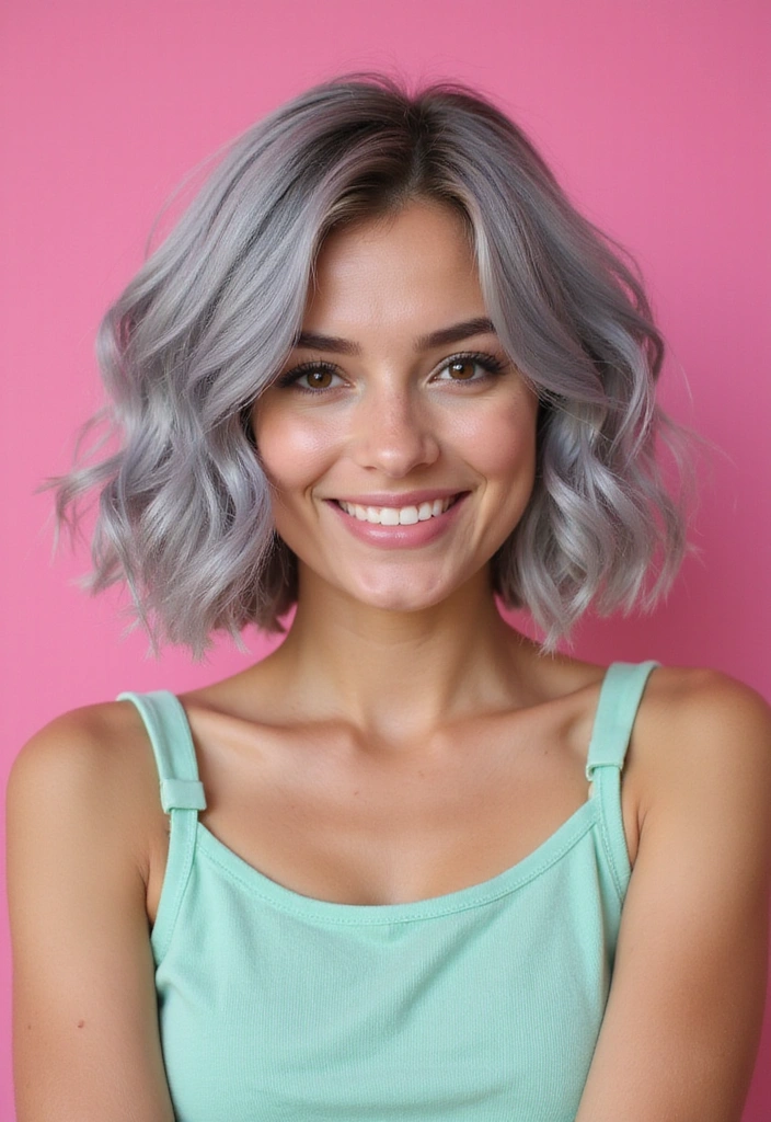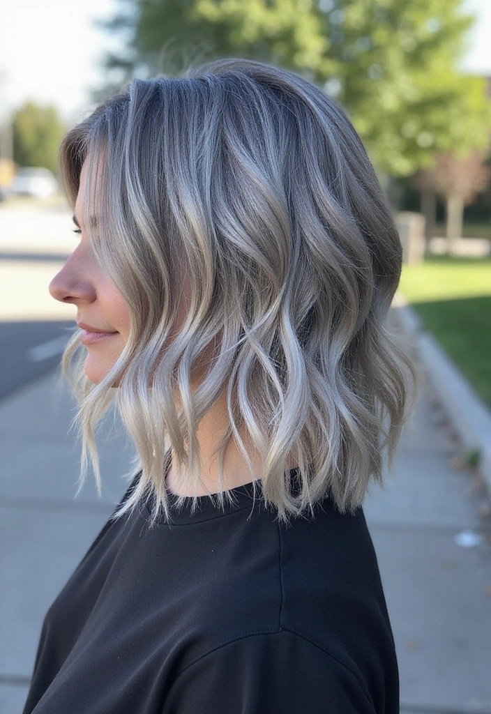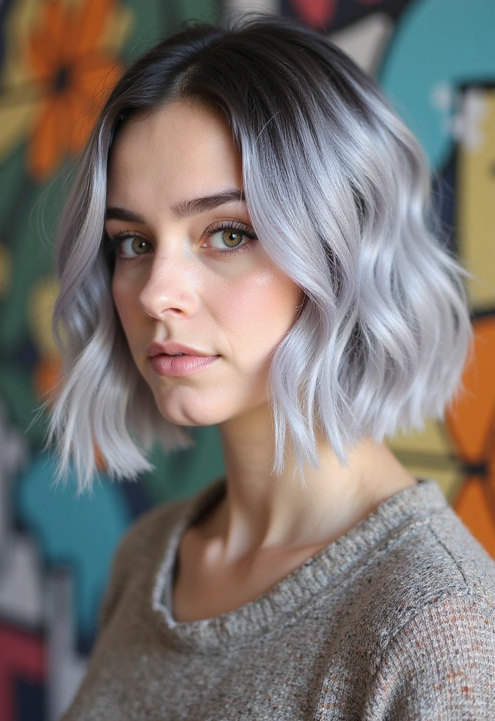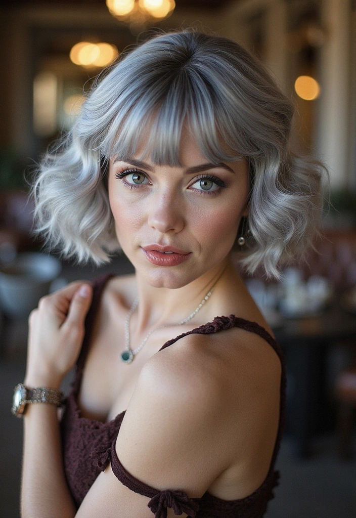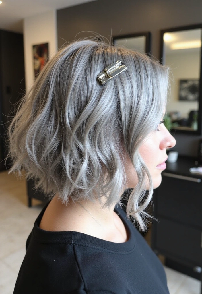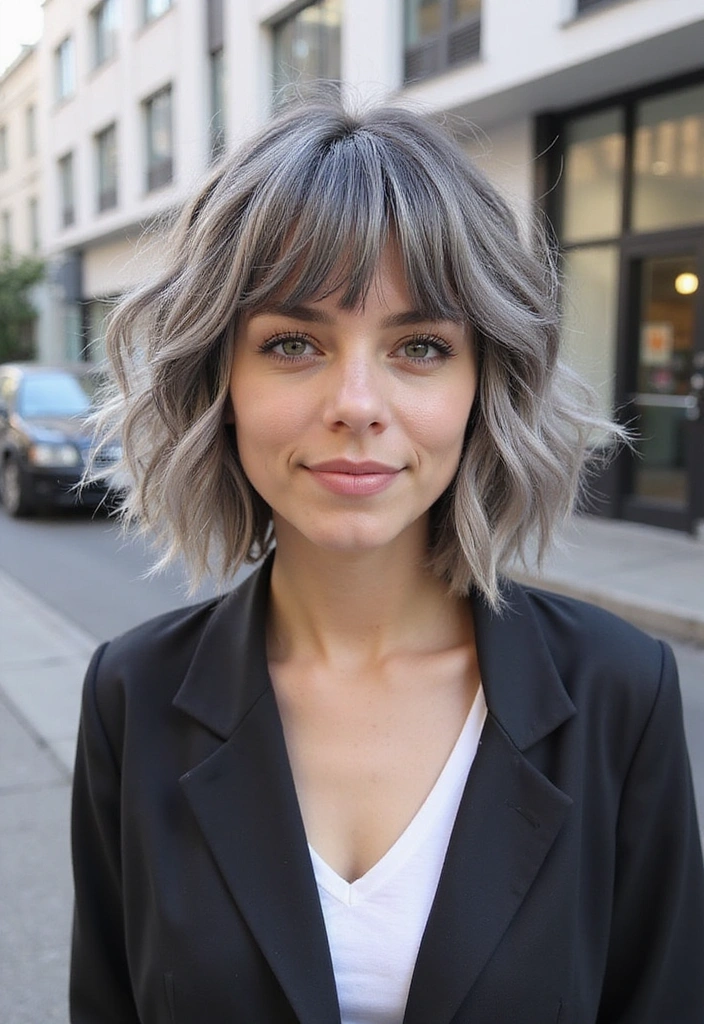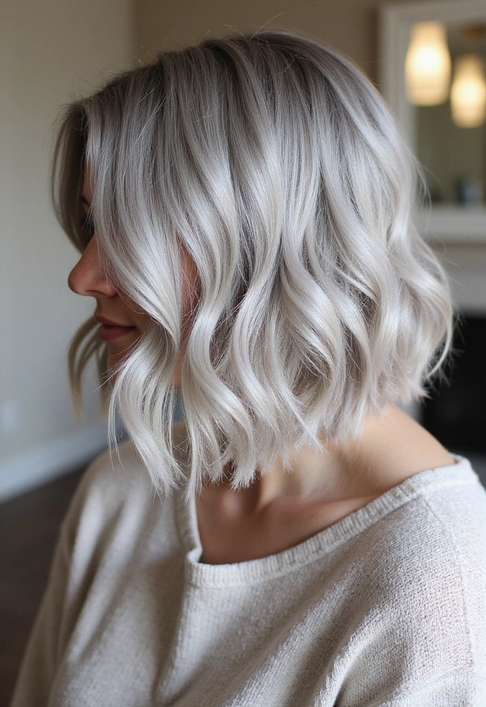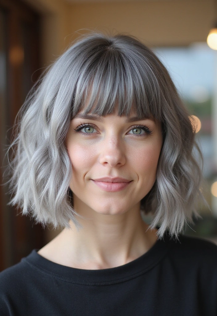 A wavy bob is a fantastic way to add texture and volume to gray hair. This style features soft, loose waves that create a relaxed yet chic look.