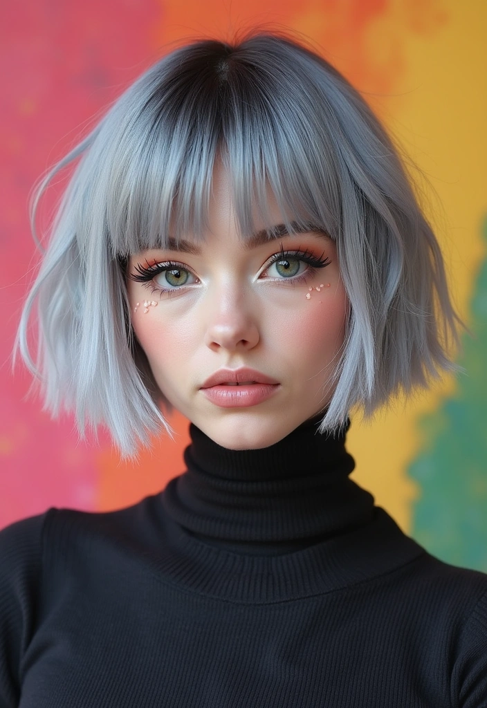 The funky bob is a vibrant style that expresses your personality through unique cuts and colors. This style can incorporate bright highlights or an asymmetrical cut to showcase your gray hair while adding a fun twist.