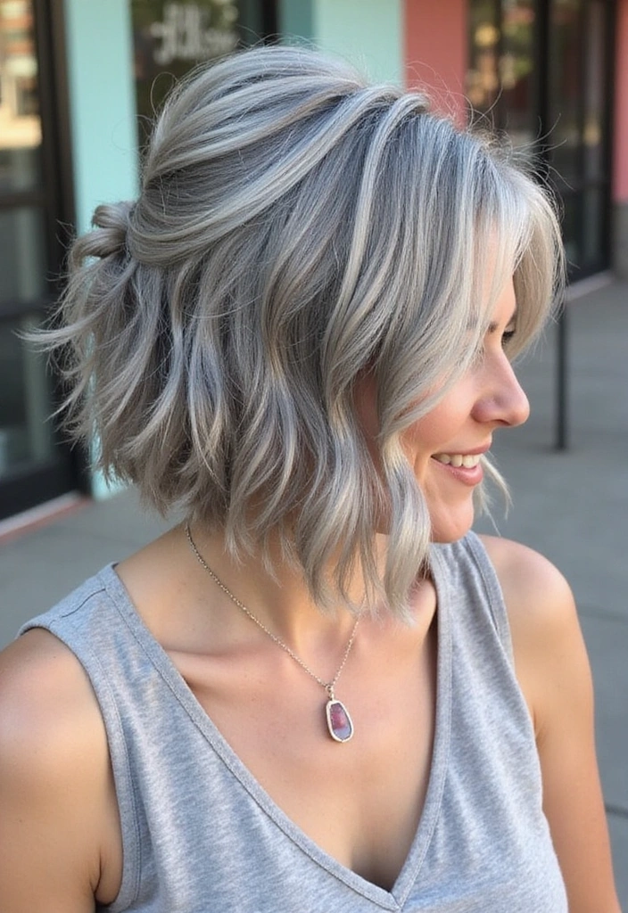A tousled beach bob is all about that carefree, relaxed vibe. This style features soft waves that mimic the look of beach hair, perfect for showcasing your gray locks.