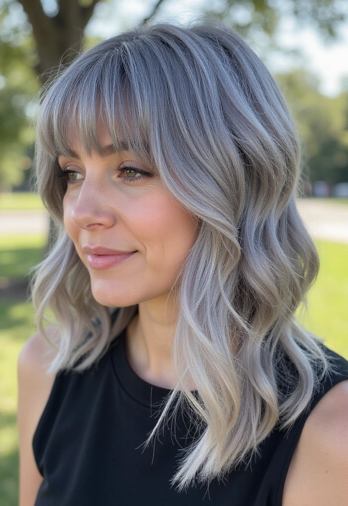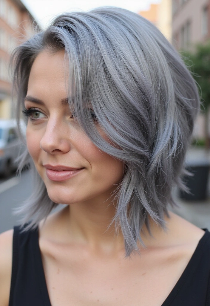This style flatters all face shapes and works nicely with both straight and curly textures. The side-swept effect draws attention to your facial features while allowing your gray hair to shine beautifully. Plus, it offers a touch of elegance that feels timeless. Don’t forget to maintain those layers with regular trims!