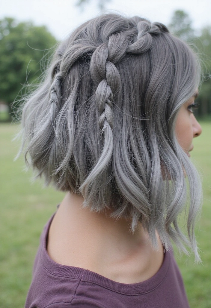 A braid-inspired bob incorporates small braids into the hairstyle, adding a fun and playful element to your gray hair. This style features braids woven into sections of the bob for a unique twist.