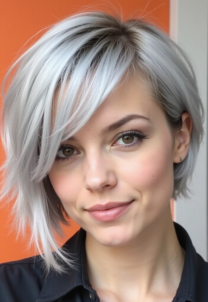 The silver pixie bob is a unique blend of the timeless bob and playful pixie cut. This style features short layers at the back and longer strands in the front, allowing for a soft yet edgy look.
