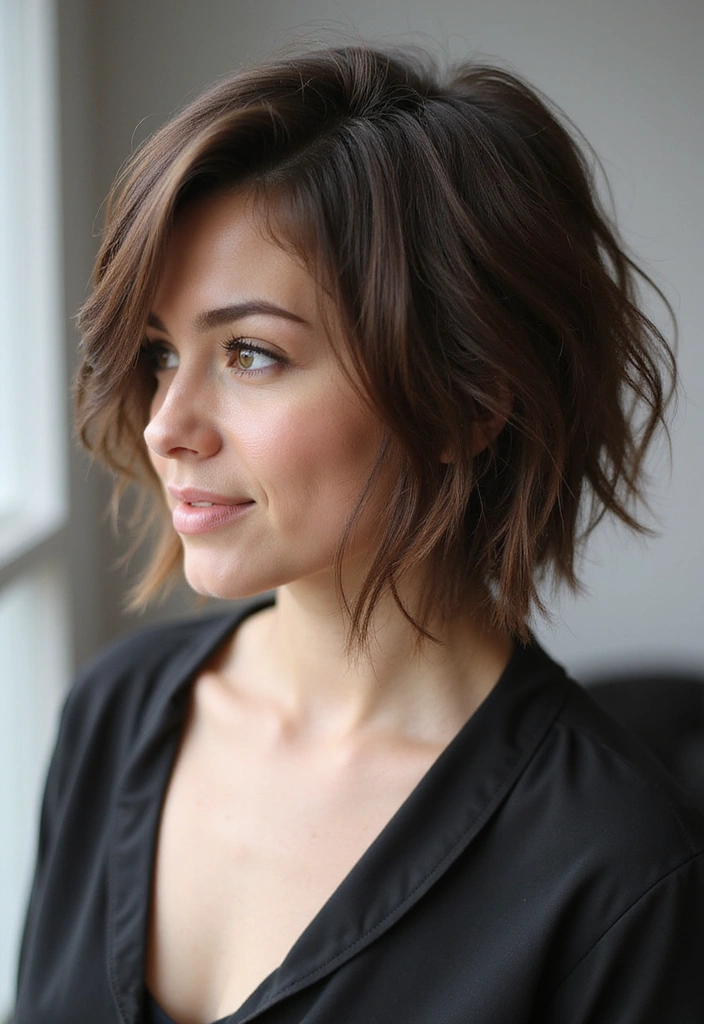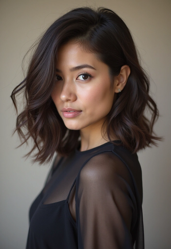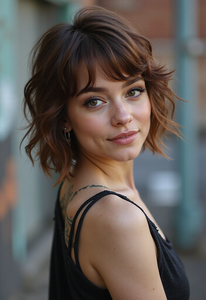 This haircut works exceptionally well on wavy or curly hair, as it enhances the natural texture. Consider adding some highlights to emphasize the layers even more.