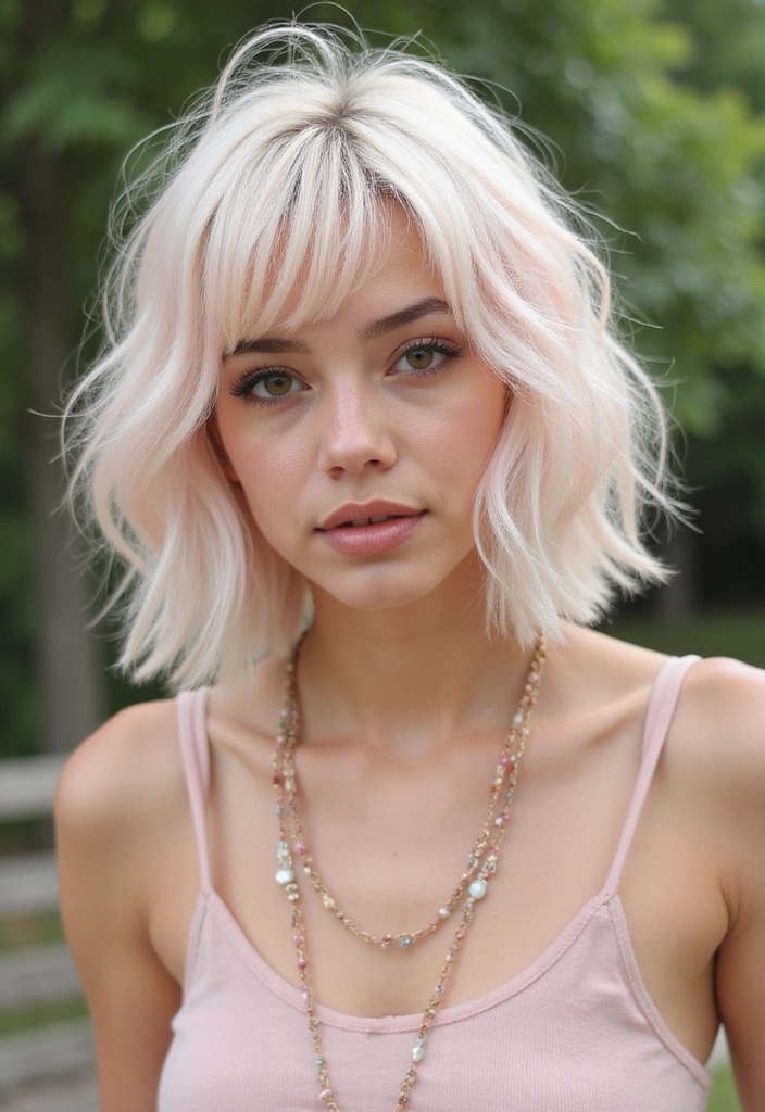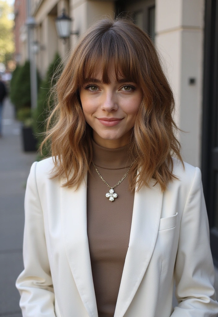 Using light styling products can help keep the fringe looking soft and feathered. This hairstyle works for casual outings and special events, providing a versatile choice for any occasion. Pair it with soft outfits for a balanced look. It’s a delightful option for those wanting to embrace their playful side while looking chic!