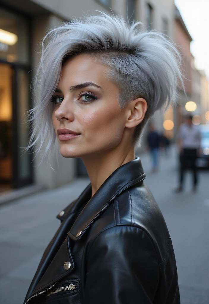 Embrace your inner rock star with an edgy silver shaggy mullet! This hairstyle exudes confidence and is an excellent way to showcase your bold side.