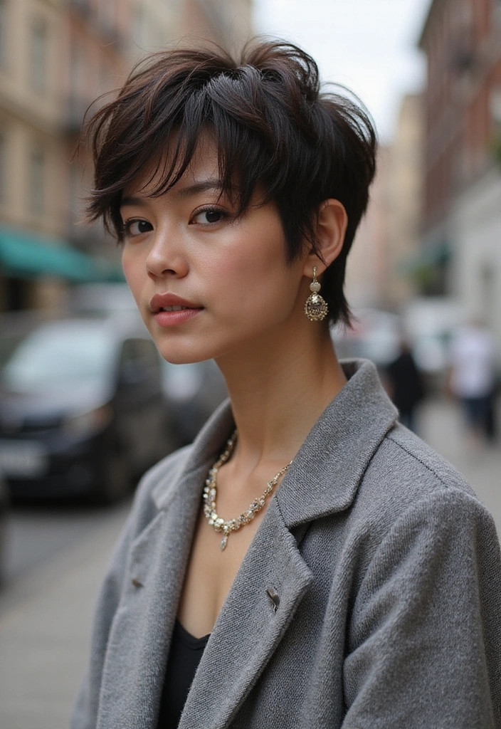 The contrast of the shorter pixie in the front with the longer back creates dynamic visual interest. To maintain this look, light styling products help keep everything in place. It’s perfect for those wanting a mix of softness and edge. This hairstyle is great for both casual and formal events, making it versatile and appealing!