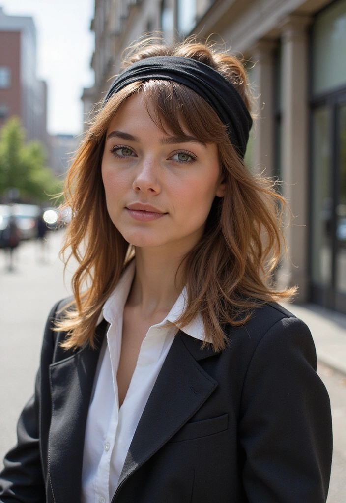 This style works great for both casual outings and special occasions. The headband can also help keep stray hairs in place, making it practical as well as stylish. You can choose colors and designs that complement your outfit for a put-together appearance. This hairstyle is perfect for those wanting to add a feminine twist to their edgy style!
