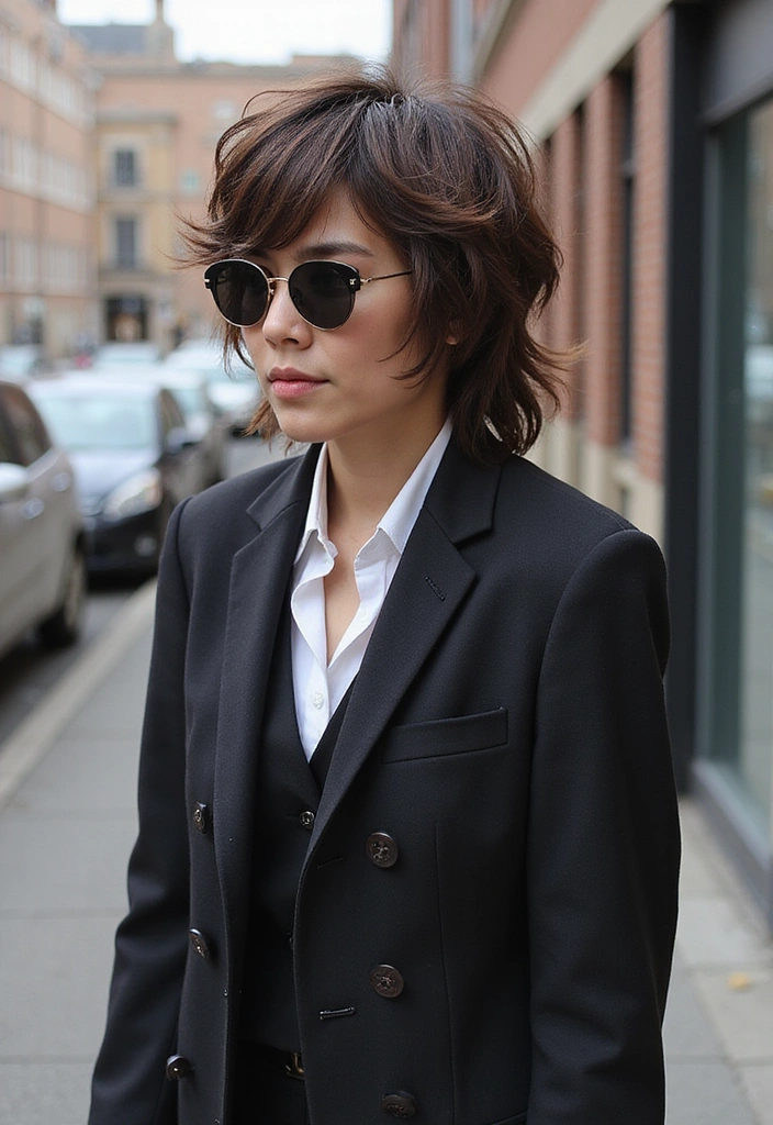 Using straighteners can help achieve that sleek appearance, providing a chic contrast to the shaggy layers. It’s ideal for professional settings while still offering an edgy appeal. Pair with elegant outfits for a polished appearance. This hairstyle is perfect for those wanting to maintain an edge while still looking put-together!
