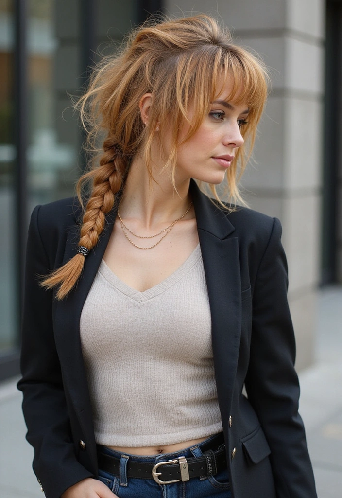 A side braid can add a chic element to your shaggy mullet! This style combines edge with femininity, creating a balanced look.