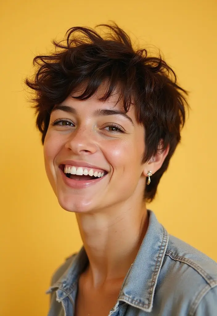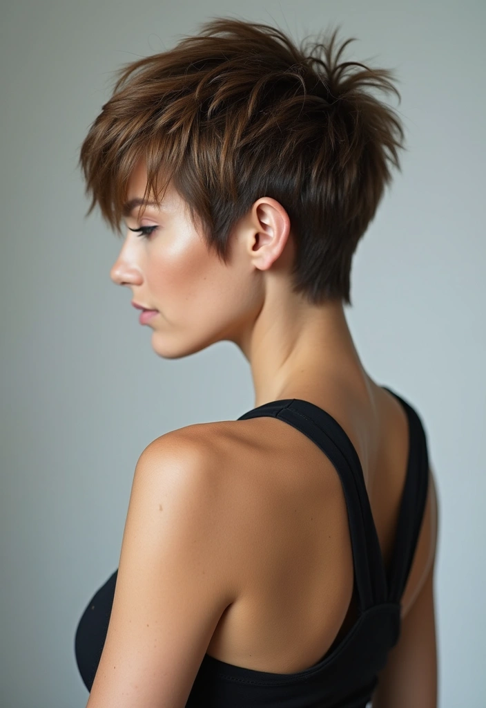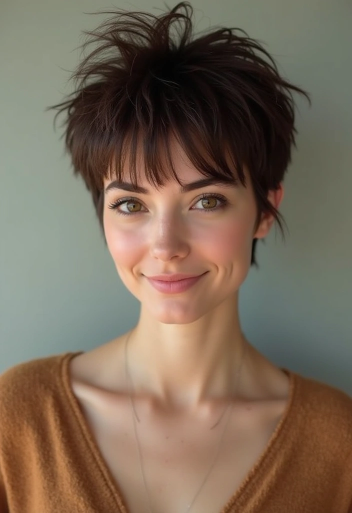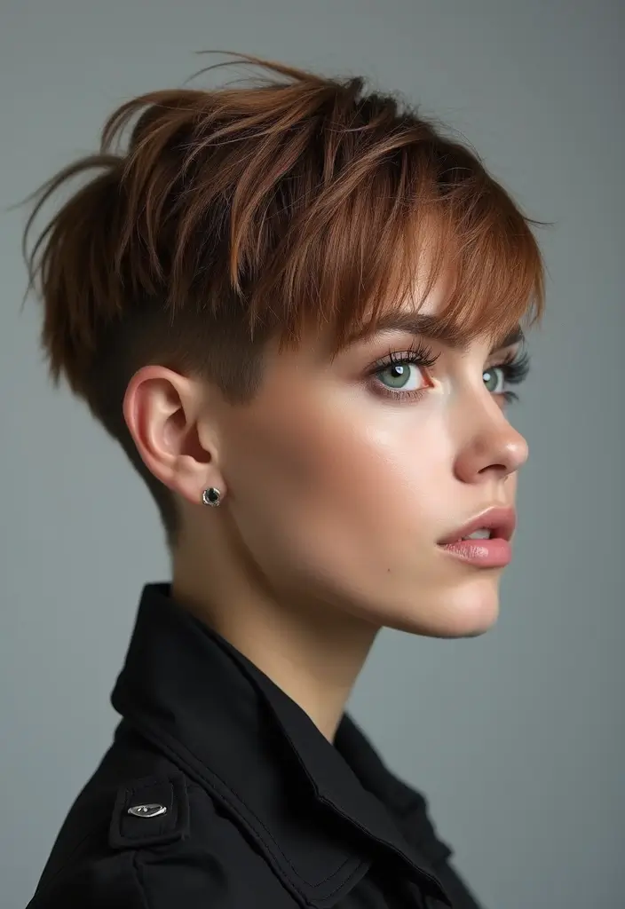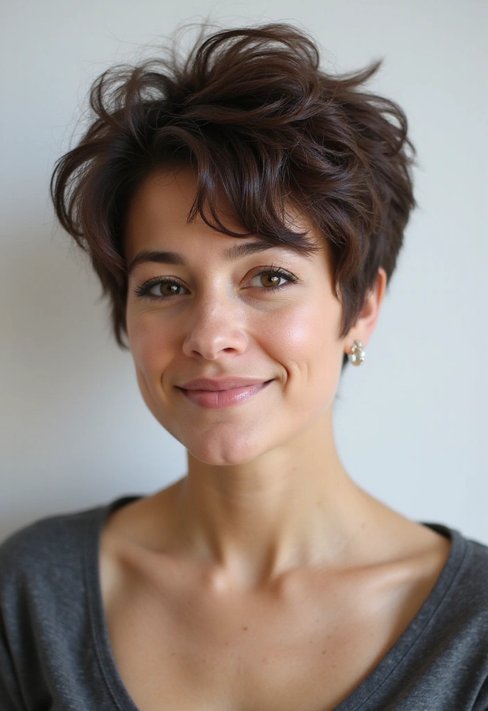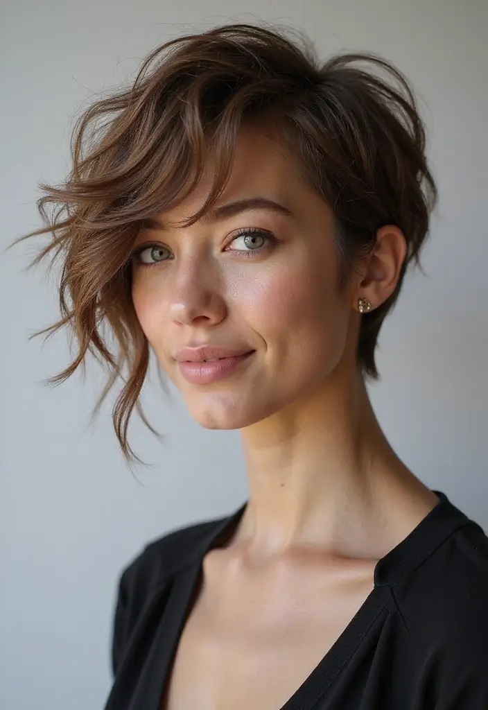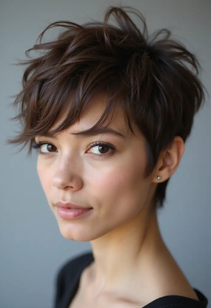 A shaggy pixie cut with a textured crown provides height and volume, enhancing your overall look.