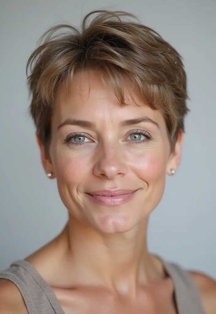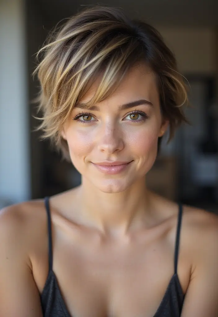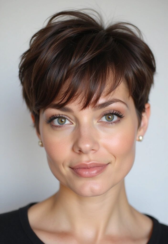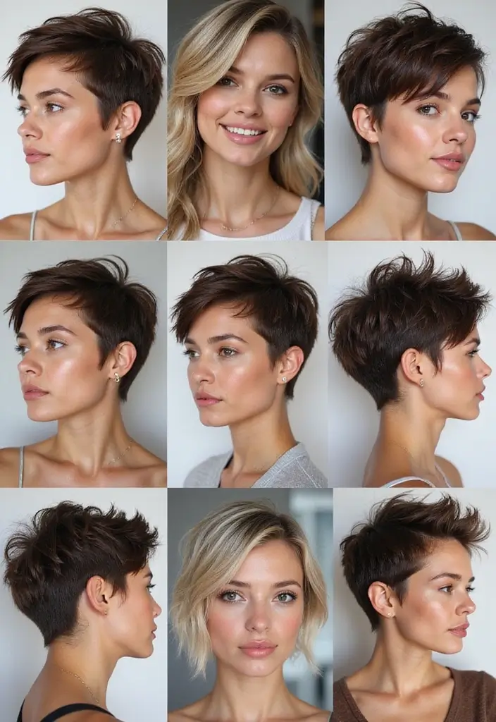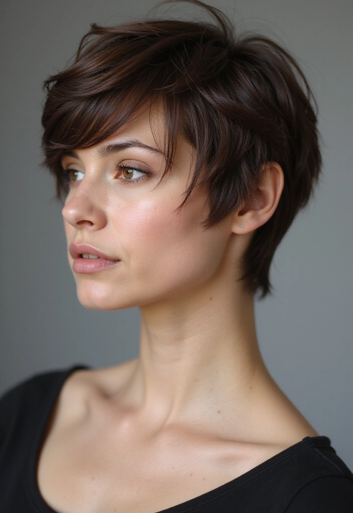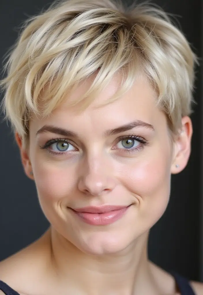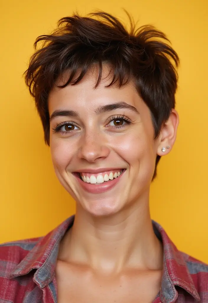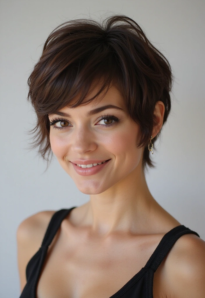 A shaggy pixie cut with a textured crown provides height and volume, enhancing your overall look.