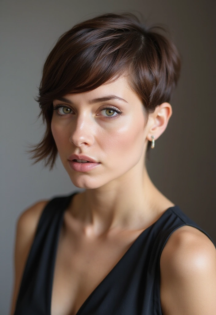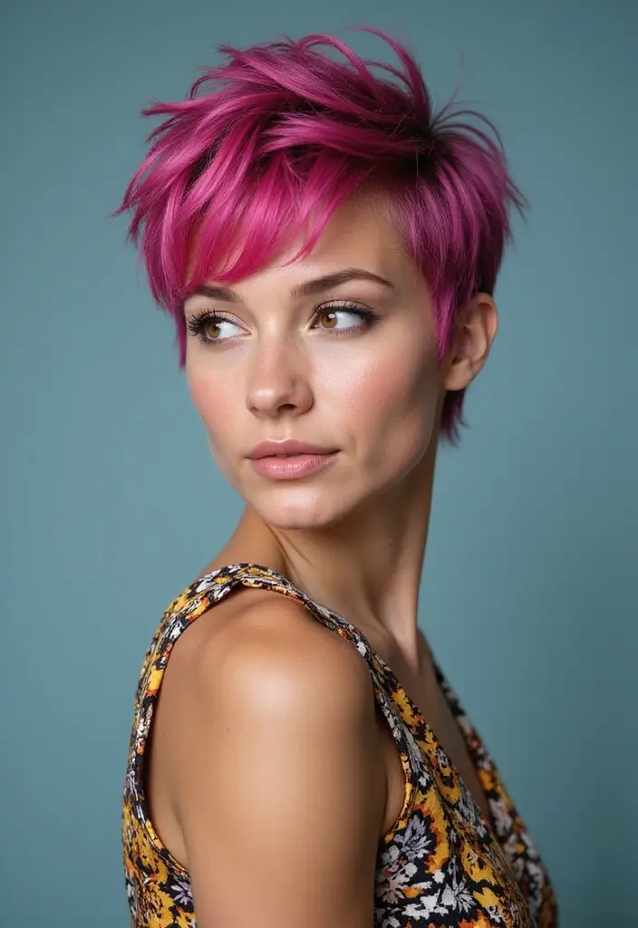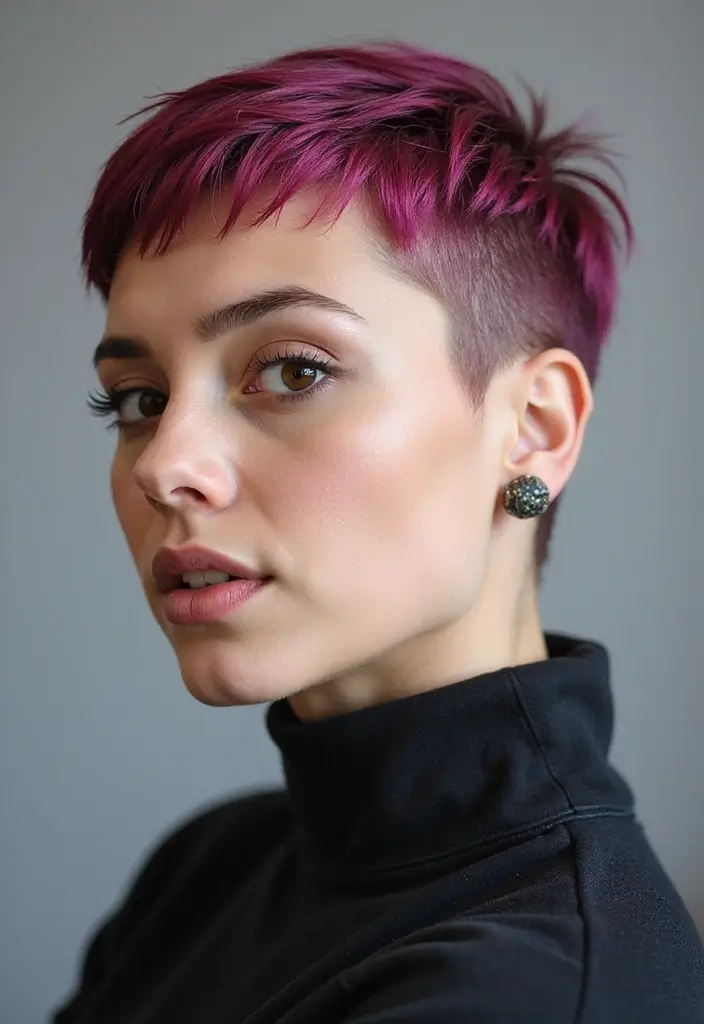 The asymmetrical pixie cut has a rebellious vibe that’s hard to ignore.