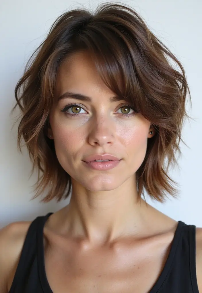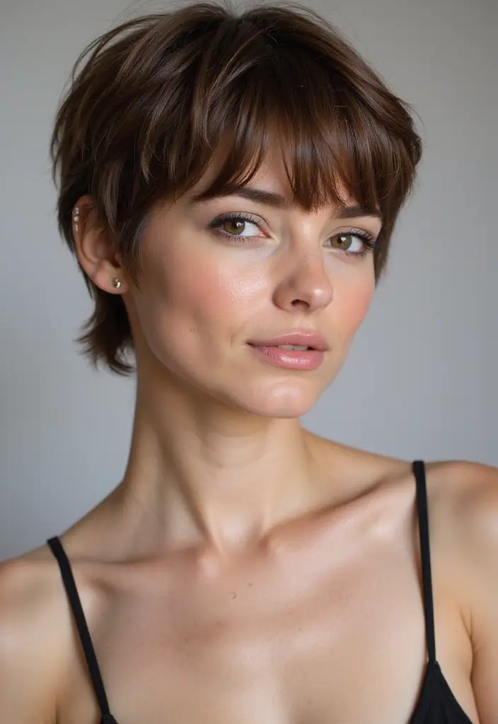 A classic shaggy pixie is more than a haircut; it’s a statement! Effortlessly chic, this versatile style shines with bold accessories or a fresh face, proving that confidence is the ultimate accessory.