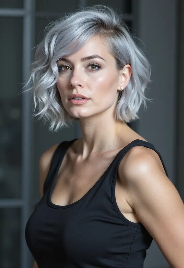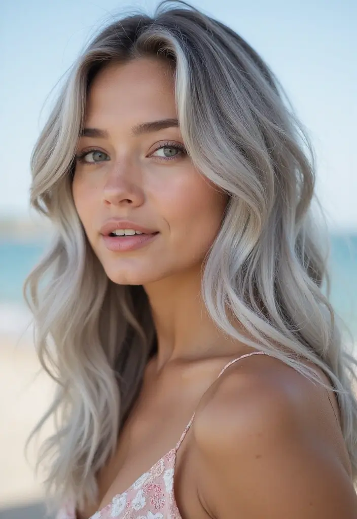 You can achieve beach waves with a curling iron or by braiding your hair overnight. This style is perfect for adding a touch of fun to your silver locks.
