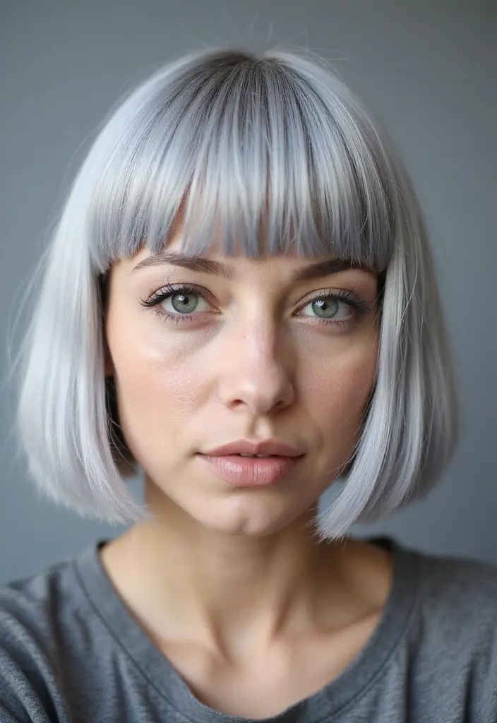 5. Ashy Silver Blunt Bob