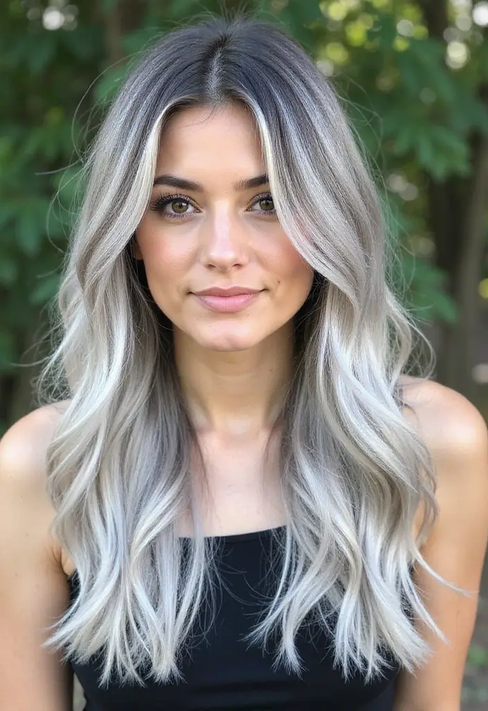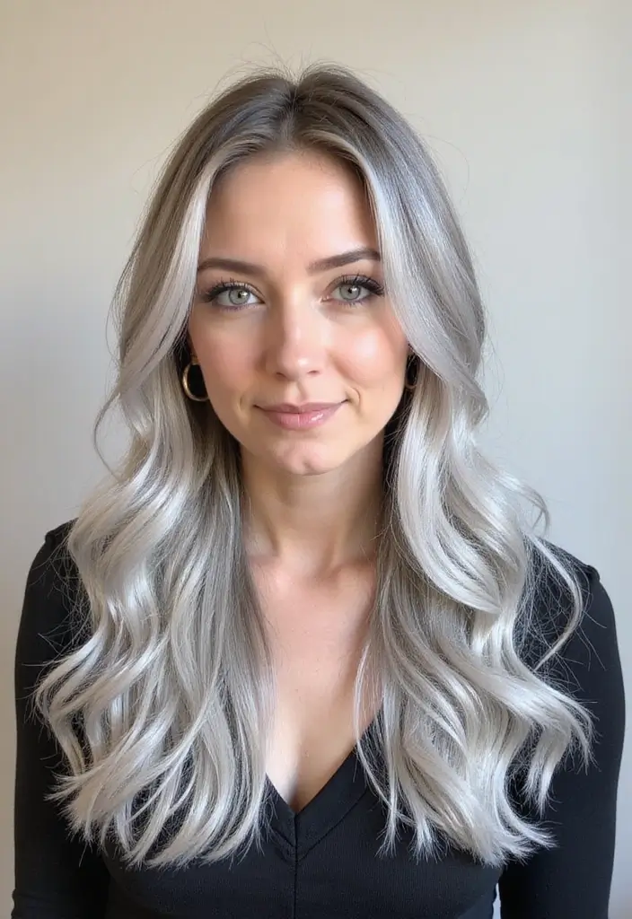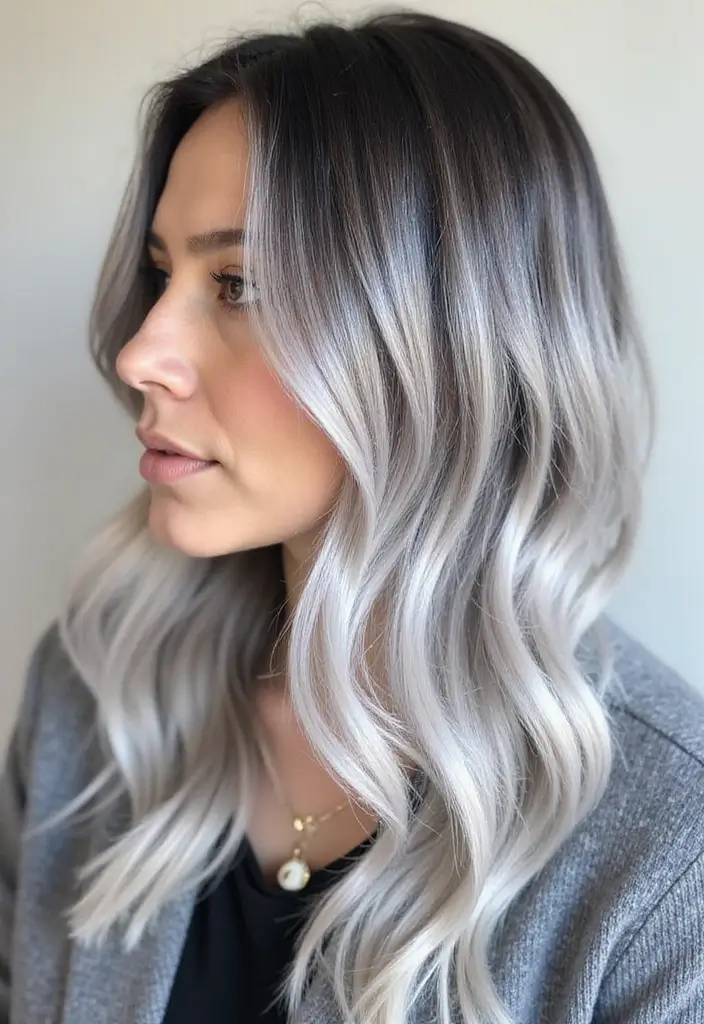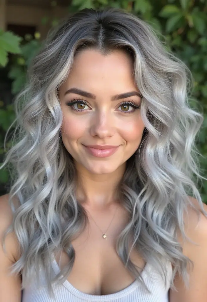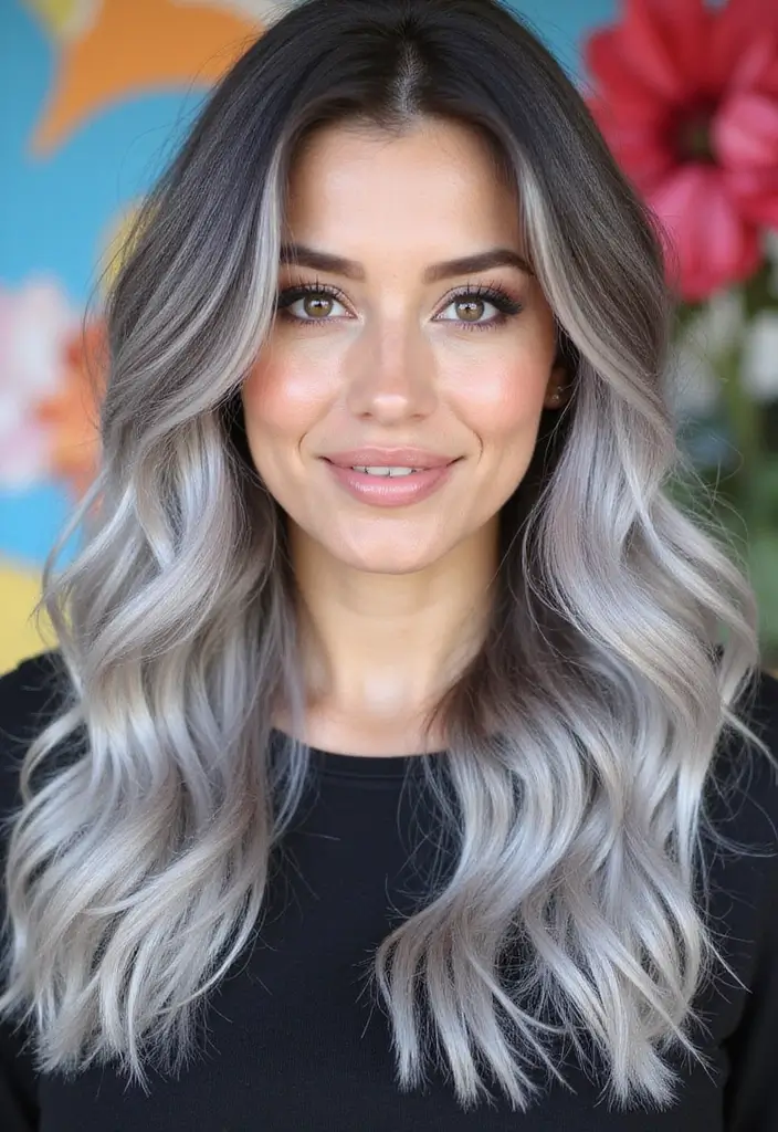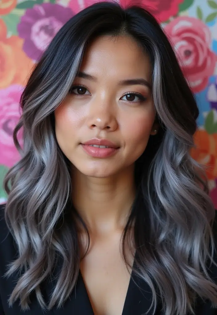 This look works beautifully on long or medium-length hair and can be adapted to suit any base color, whether it be brown, black, or even vibrant shades. Silver balayage captures light beautifully, making it a gorgeous choice for all occasions.