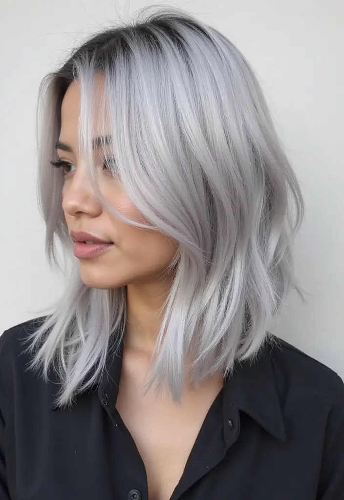 Layers add versatility to any hairstyle, and shimmering silver layers can create a stunning effect. The layers give volume and movement, making the silver color pop. This style is flattering for both long and medium-length hair.