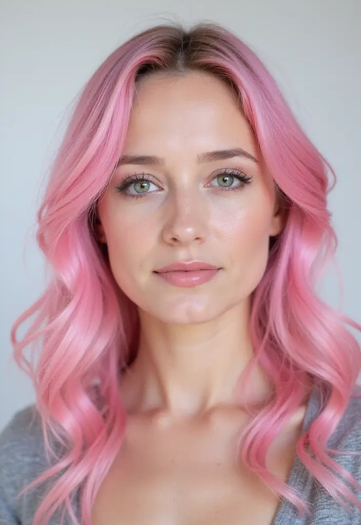 A pink ombre that transitions into silver creates a soft yet bold look that is whimsical and fun. The blend of pink and silver is perfect for creative women looking to explore colorful hairstyles without losing the elegance of silver.