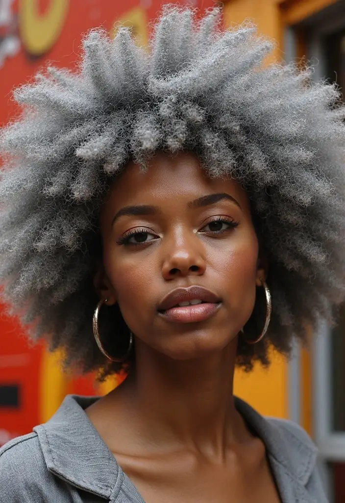 A punchy fro is a bold and beautiful way to embrace your silver hair. This voluminous hairstyle is perfect for showcasing the texture and vibrancy of your silver locks. It’s a fun and fierce choice that celebrates natural curls and waves.